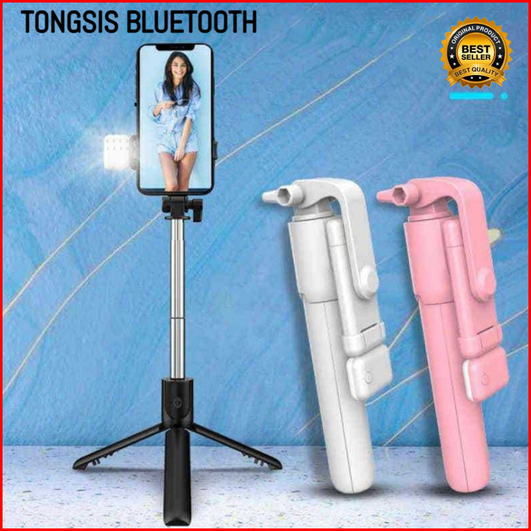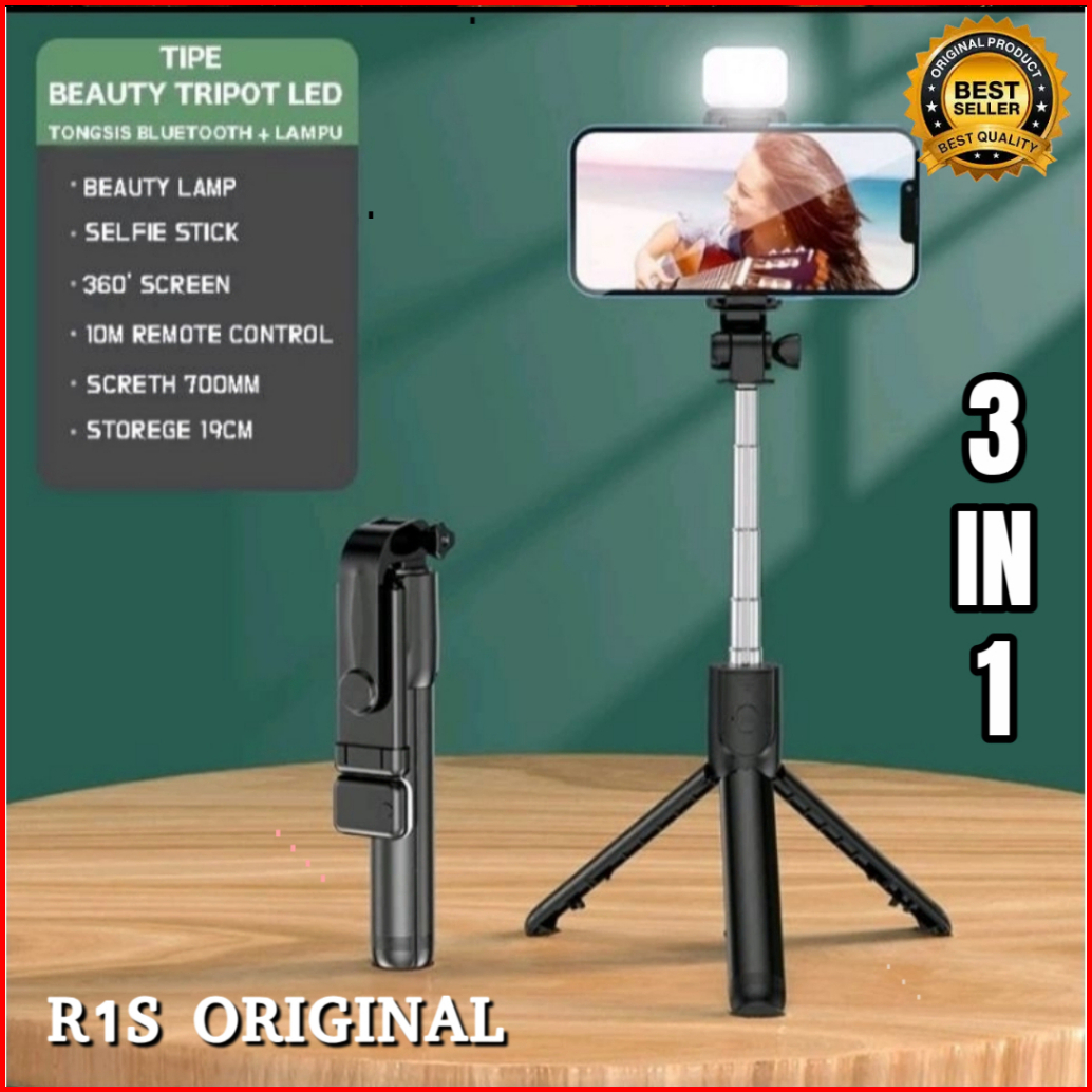 Super Tongsis Bluetooth Led R1s 3in1 Remote Selfie Tongsis Tripod Blue