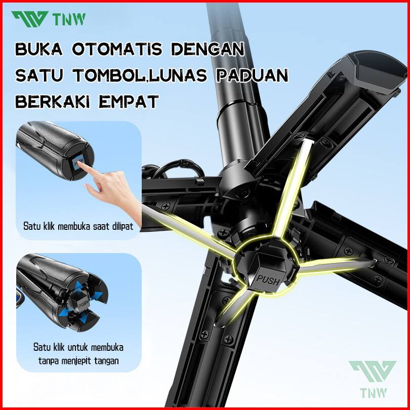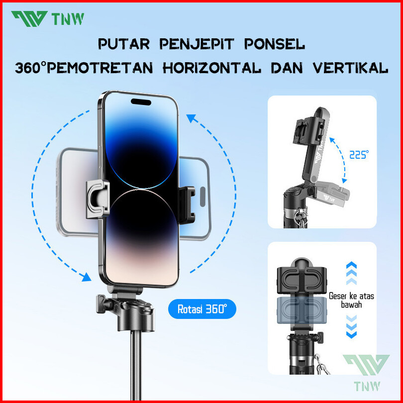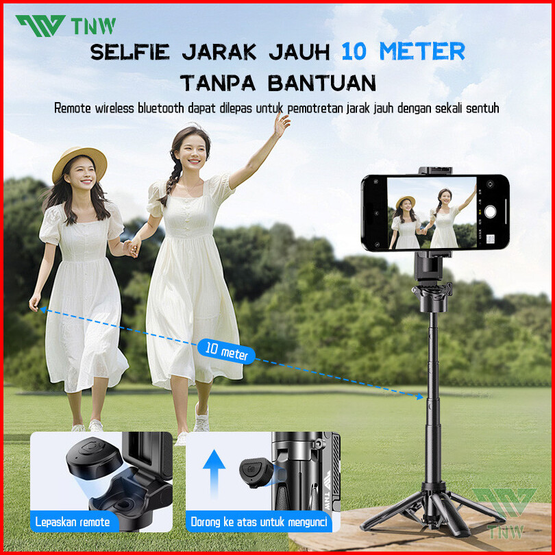 Tnw T26 Mini Selfie Stick Extendable Grip Tripod Bluetooth Remote Controltongsis Tripod Dan Lampu