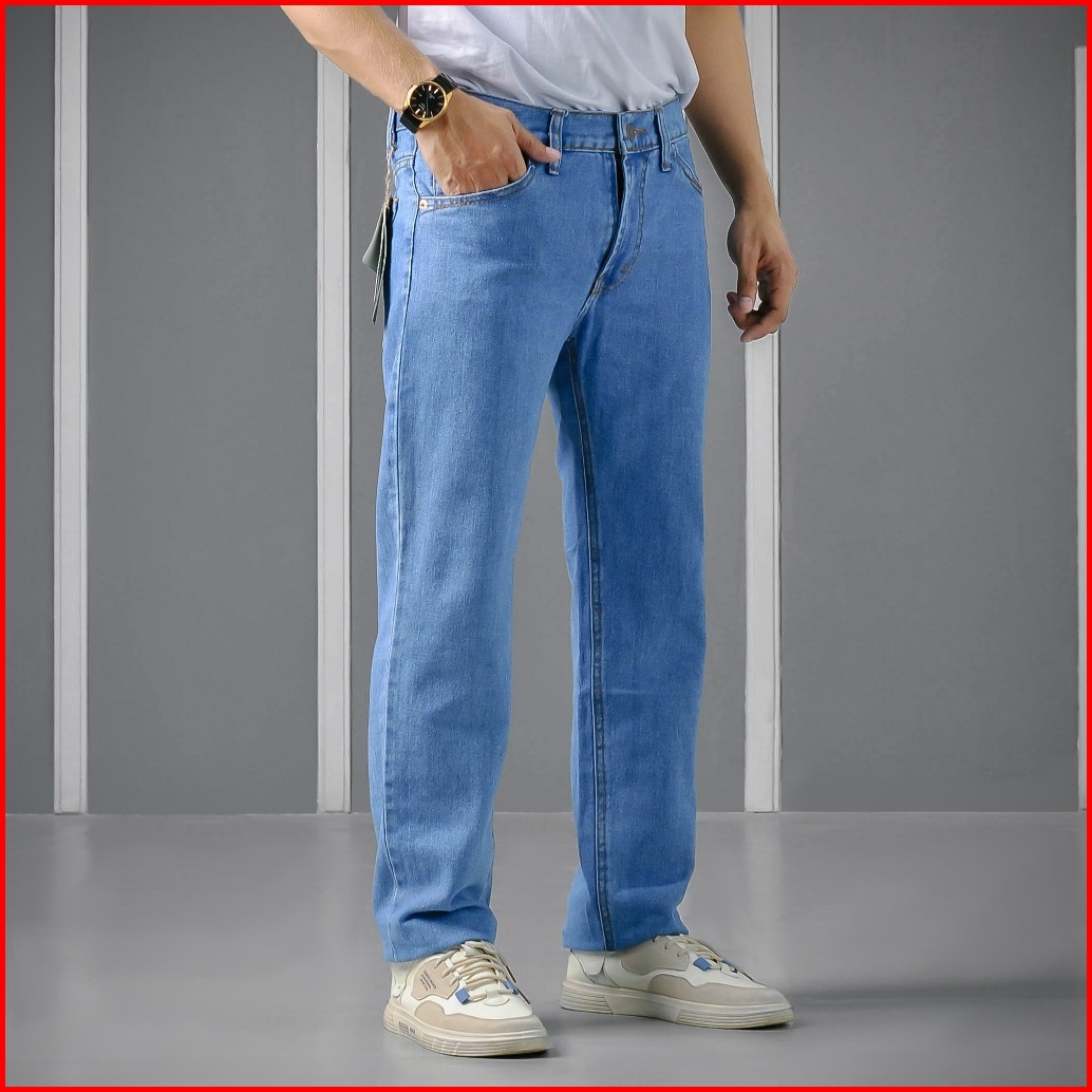 Celana Jeans Panjang Pria Reguler Basic Straight Fit Korean Style Warna Navy Ukuran 2838