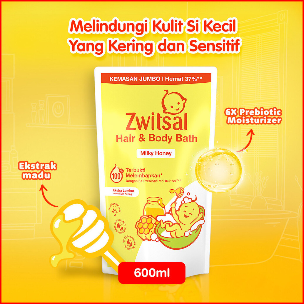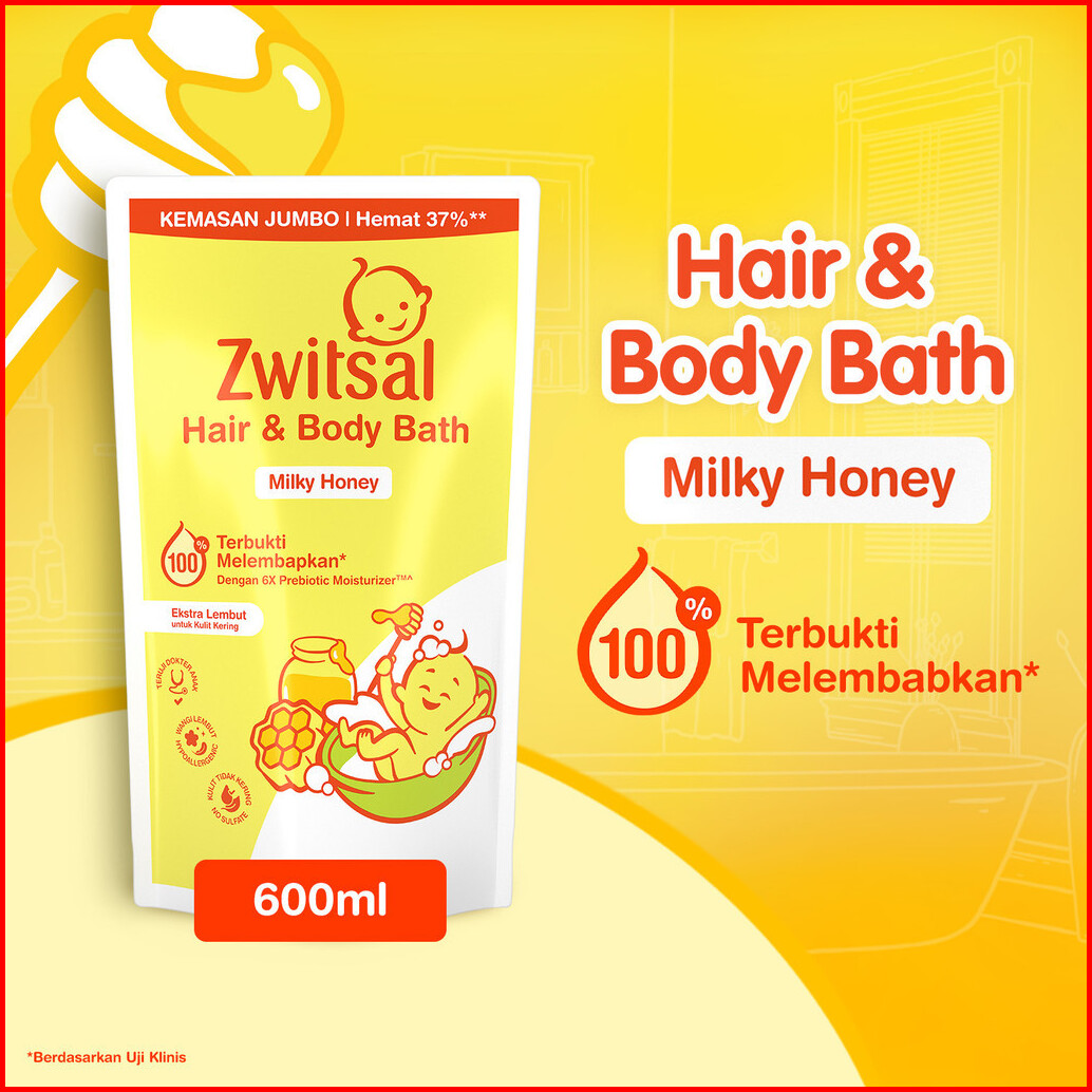 Zwitsal Baby Bath Hair Body Milky Honey 600 Ml - Sabun Bayi