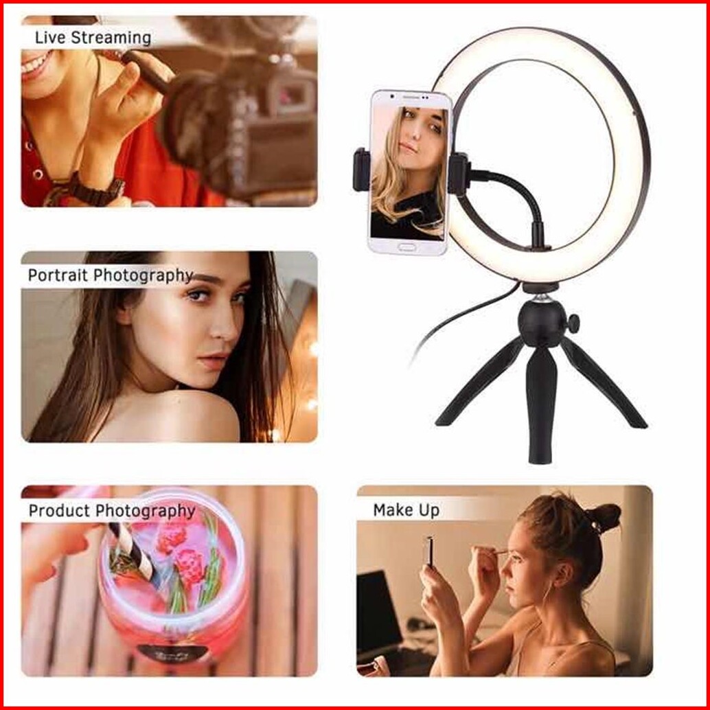 Tripod 3kaki Phone Holder Led Ring Light Selfie 3 Light Mode