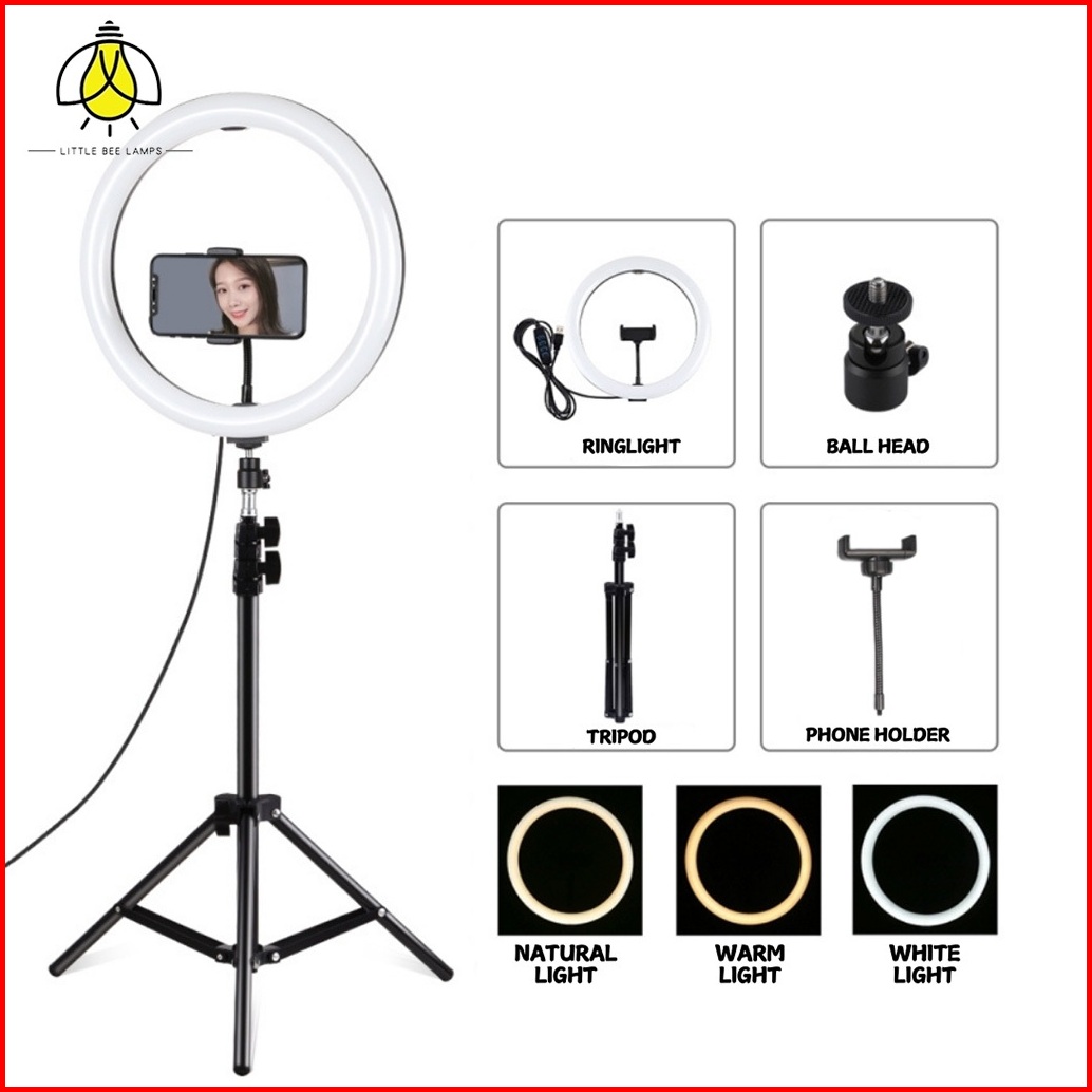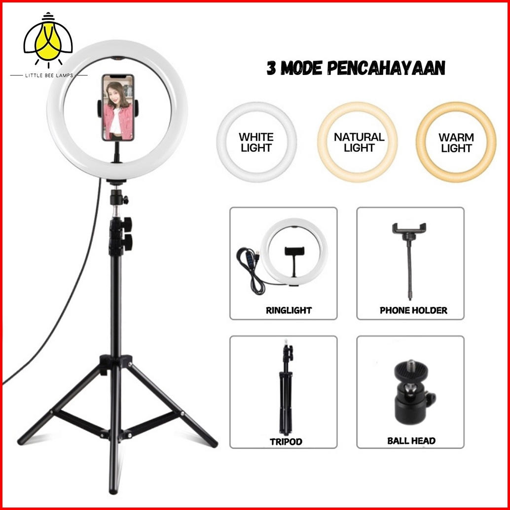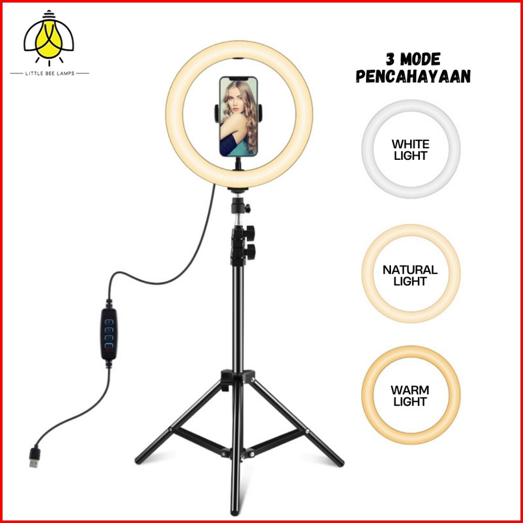 Tripod Handphone 2 1 M Tripod Ringlight Lampu Selfie 3 Warna Tiang Lampu Untuk Foto Streaming