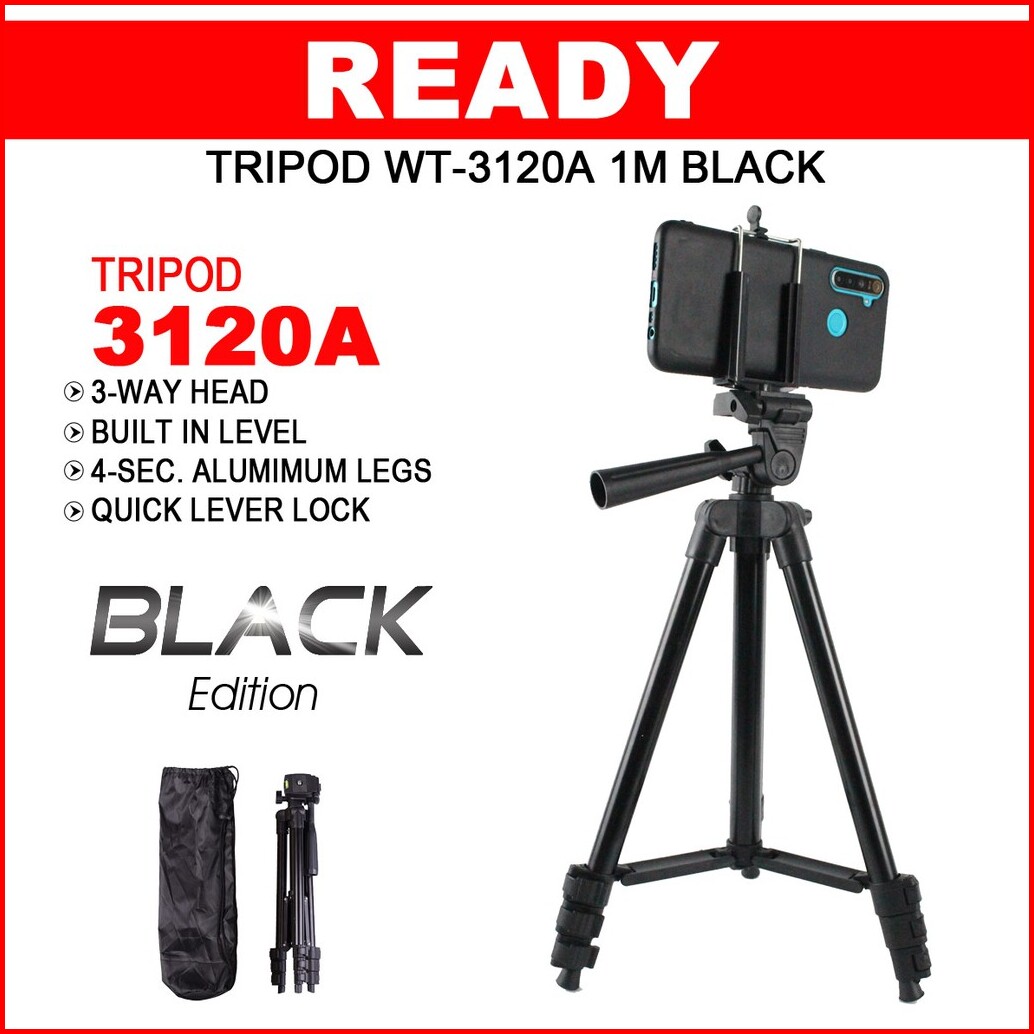 Tripod 3120 Peyangga Hp Kamera Full Hitam Universal Mudah Dibawa Travelling Stand Handphonetinggi 1 Meter Free Holder U