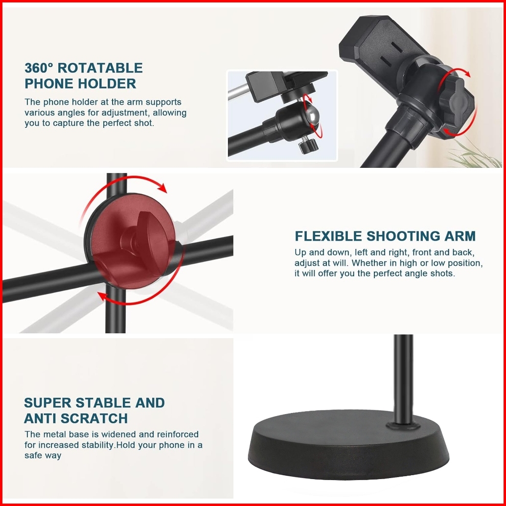 Overhead Phone Stand Tripod Led Lampu Stand Holder Bracket 360 Over Head Tripod Lampu Phone Holder Fotografi