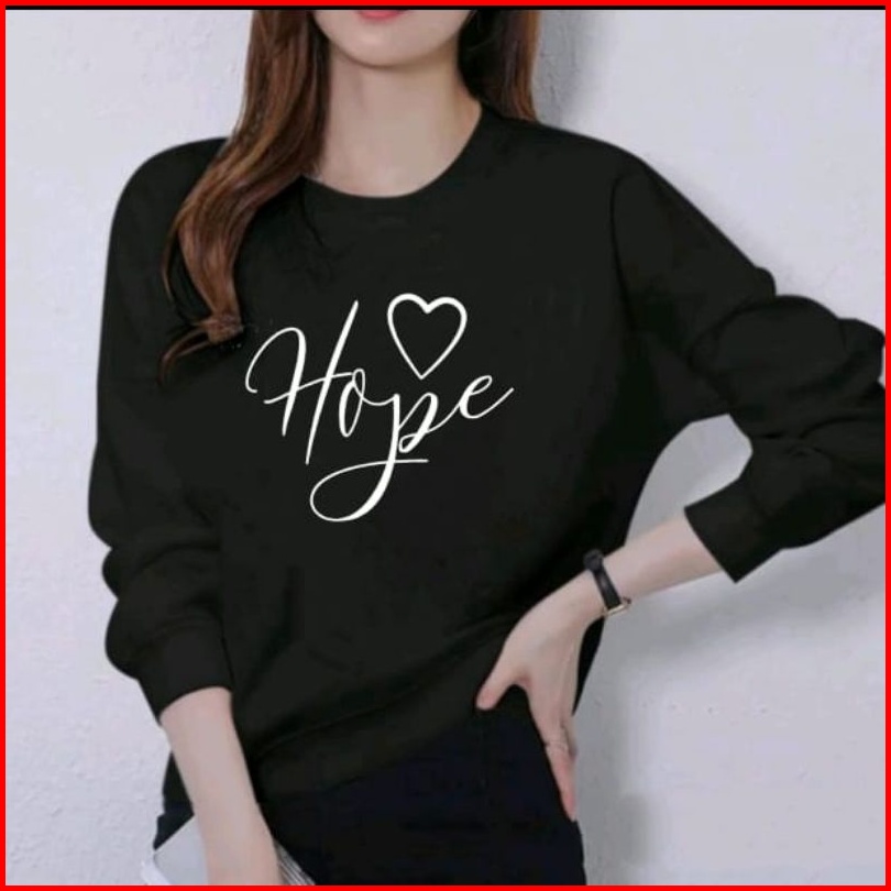 Sweater Wanita Motif Hope Love Lengan Panjang Berbahan Baby Tery
