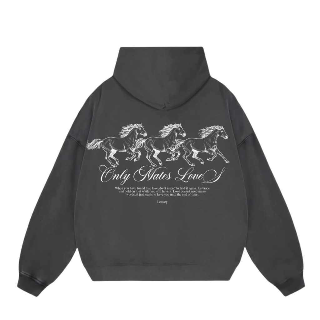 Lettucy Hoodie Boxy | Hoodie Boxy Pocket Motif White Horse