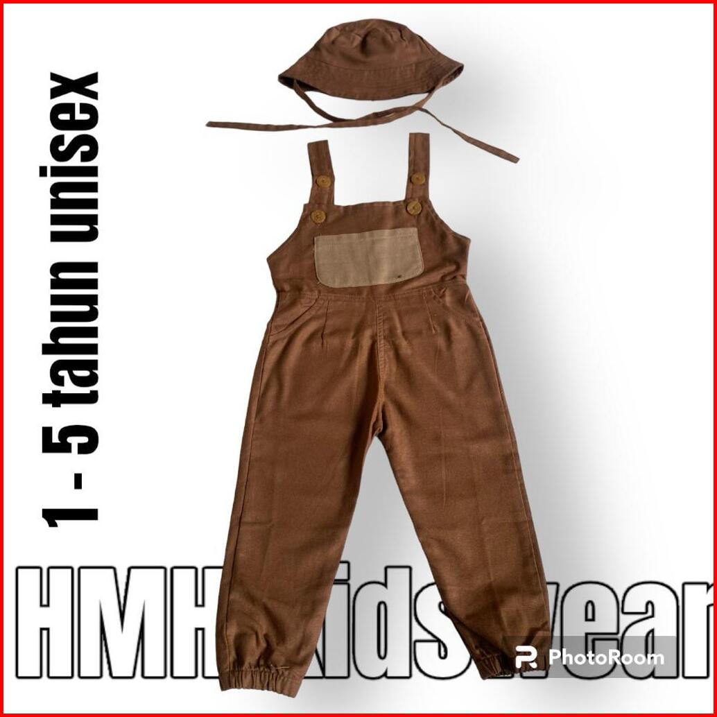 Jimmi Overall Set Topi Anak 1-5 Tahun Bahan Linen Rami Terlaris