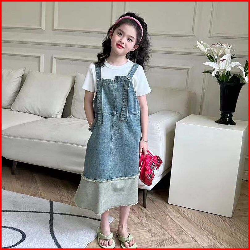 Setelan Overall Anak Perempuan Bahan Jeans Ootd Korean Style Kaos Putih Baju Kodok Dress