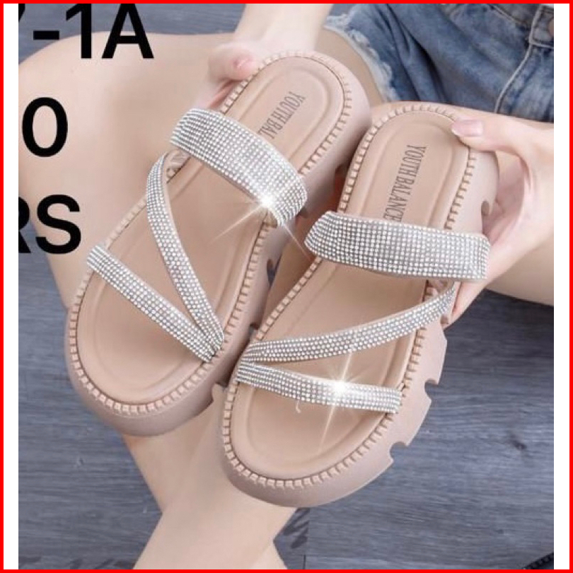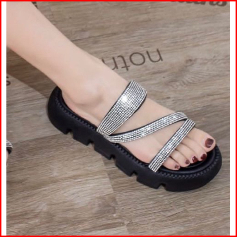 C Sandal Glitter Bling Bling 8387-1 Kekinian Rubber Trend Wanita Super Premium Import