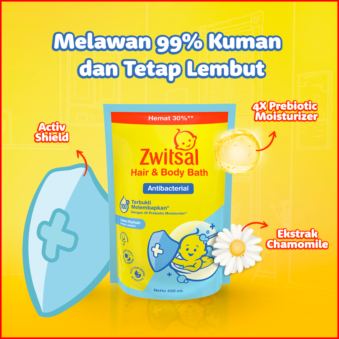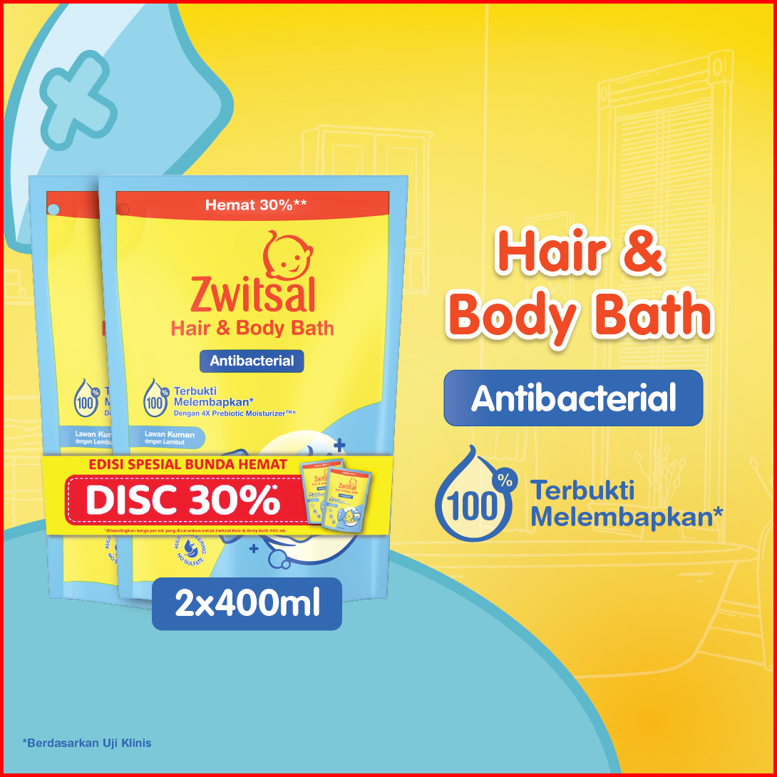 Lebih Hemat 30 Zwitsal Baby Bath Hair And Body Antibacterial 400ml Twinpack