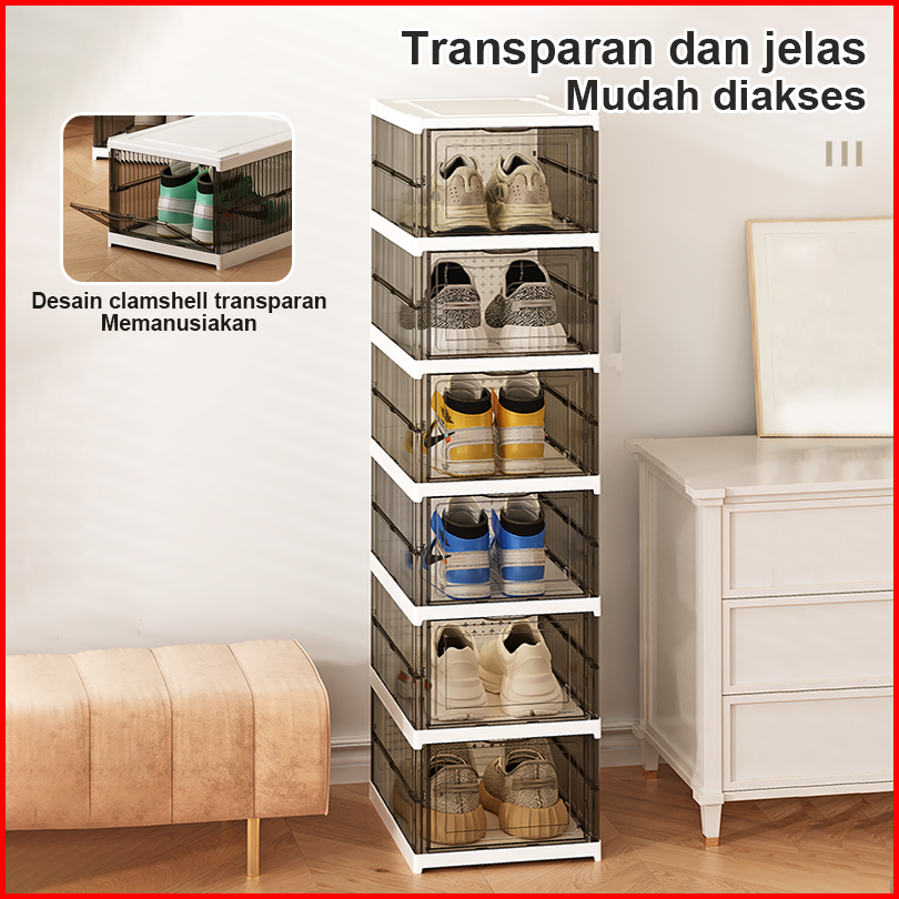 Rak Sepatu Lipat Anti Debu Lemari Multifungsi Serbaguna Rak Susun Kotak Sepatu Portable Lemari Plastik Shoe Box
