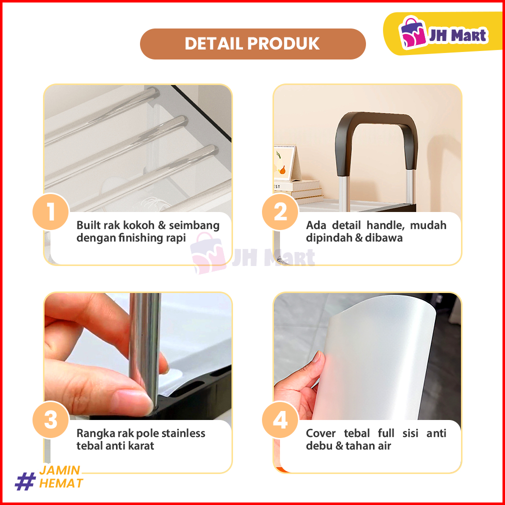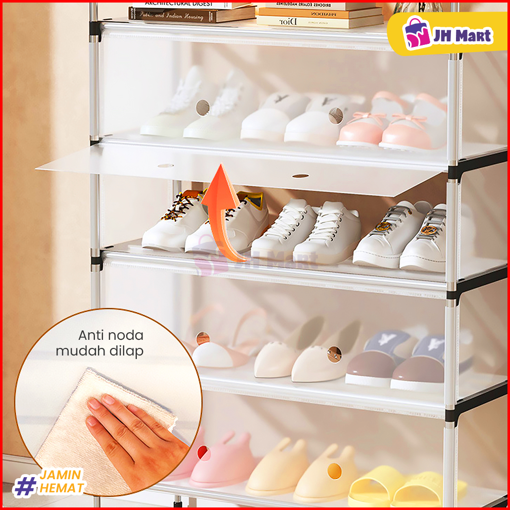 Jhm Rak Sepatu Tertutup Anti Debu 6 Susun Stainless Steel Serbaguna Minimalis Modern