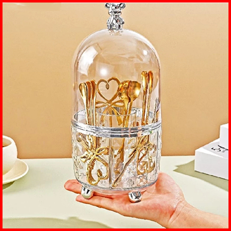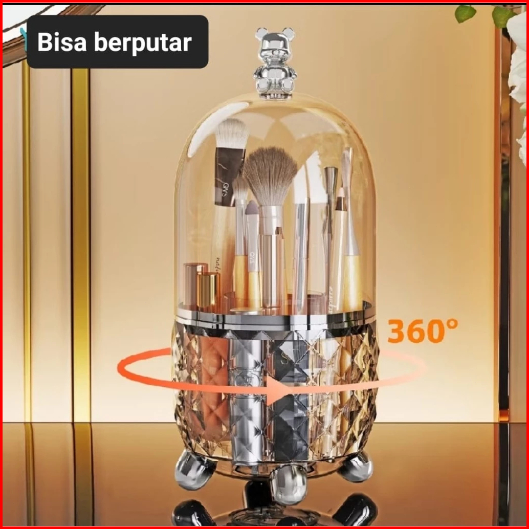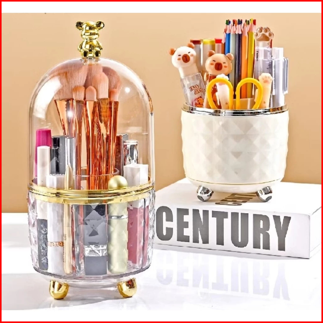 Rak Brush Kosmetik Wadah Sendok Garpu Tutup Berputar Tempat Alat Tulis Rotating Cosmetic Storage