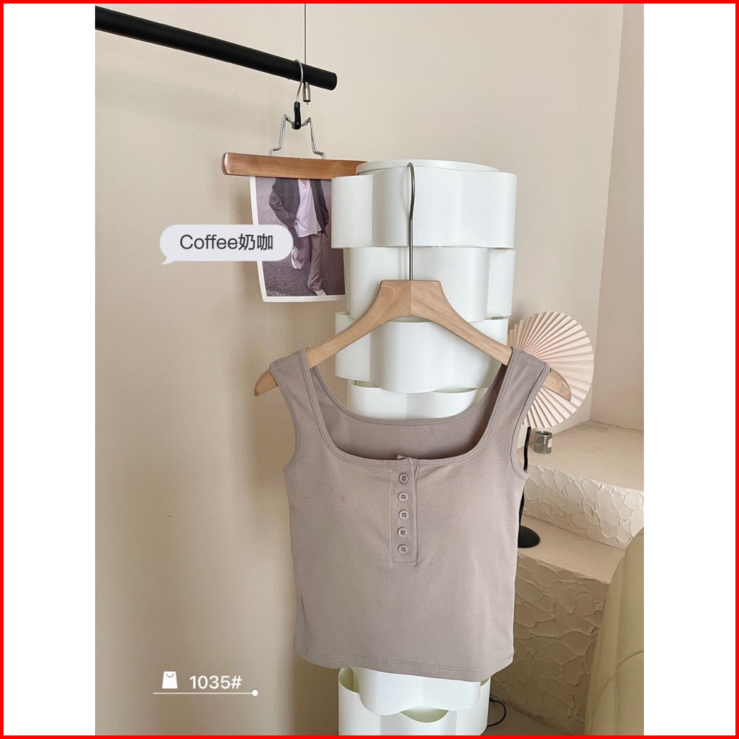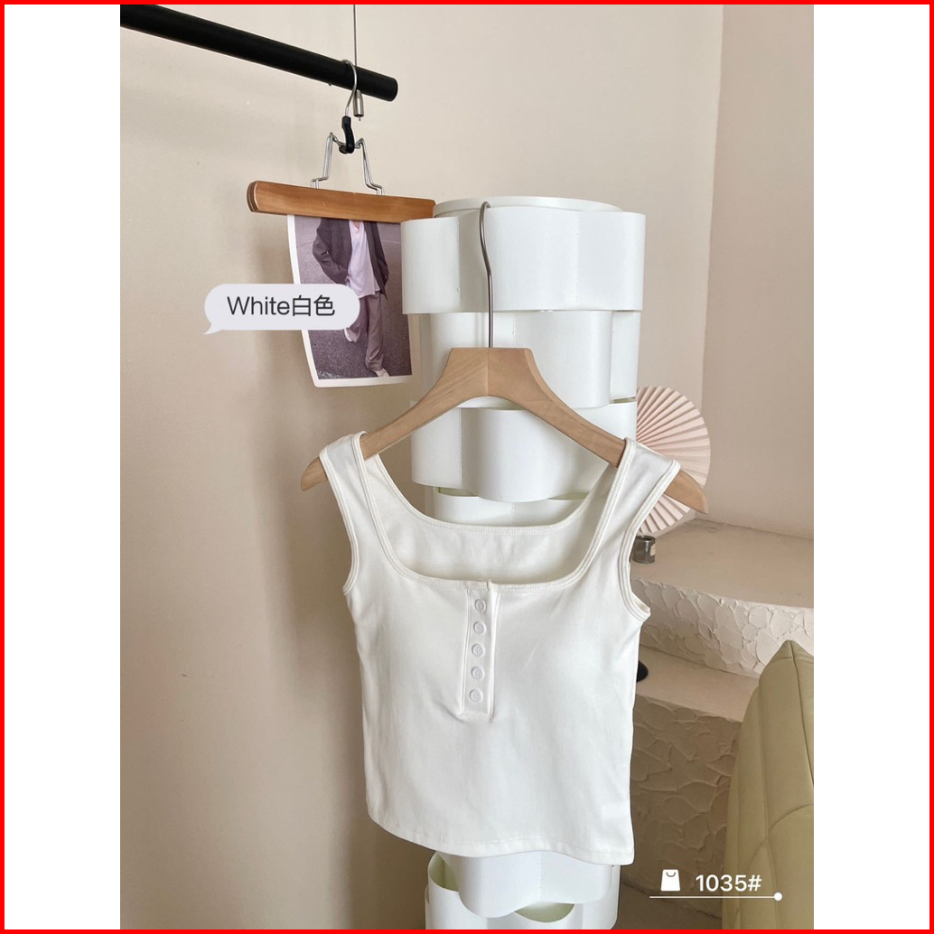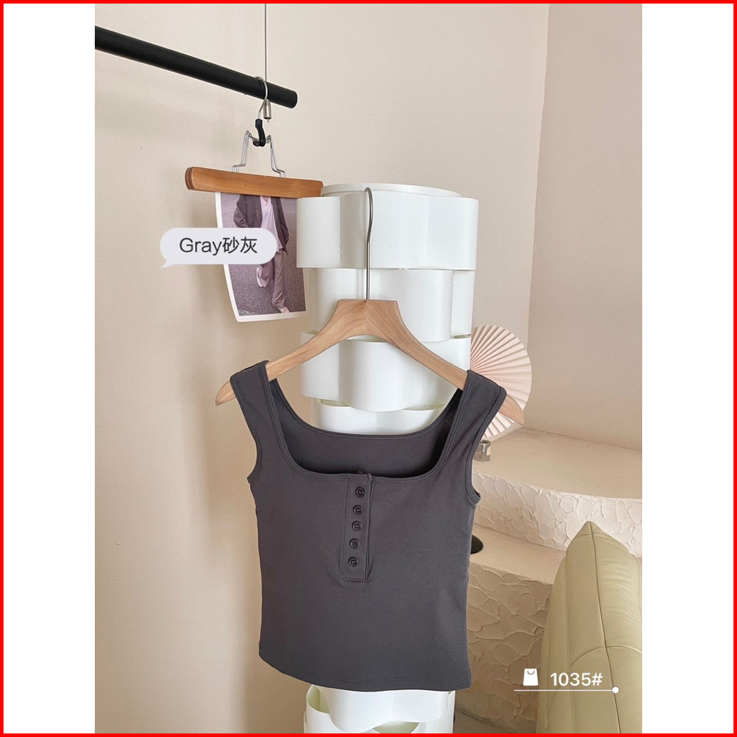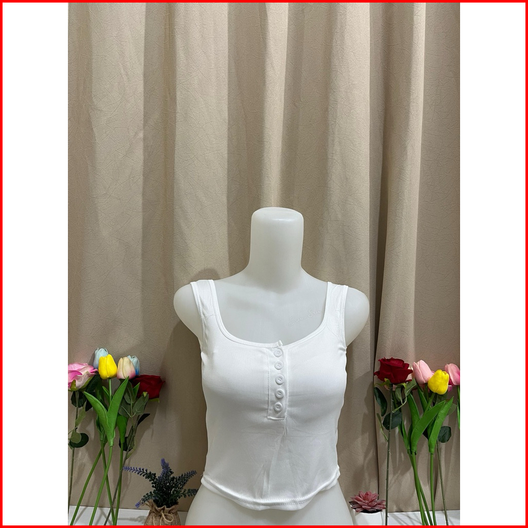 Tanktop Crop Cup Bra Wanita Kancing Aktif Depan - Atasan Cup Bra Wanita Tanpa Lengan - Tang Top Wanita Import Elastis Da