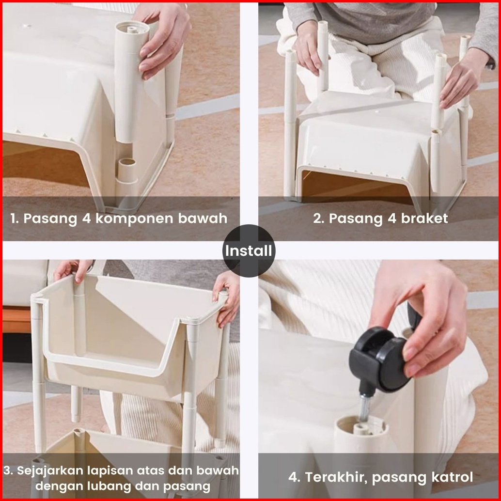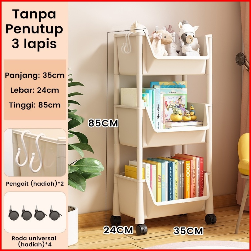 Rak Buku Susun Serbaguna Tempat Rak Buku Anak Lemari Buku Plastik Rak Portable Roda Rak Mainan