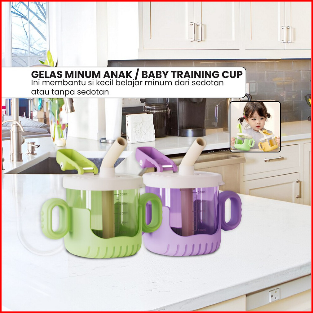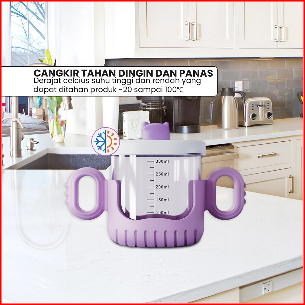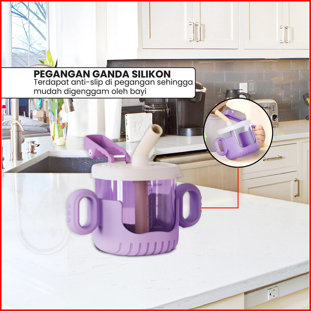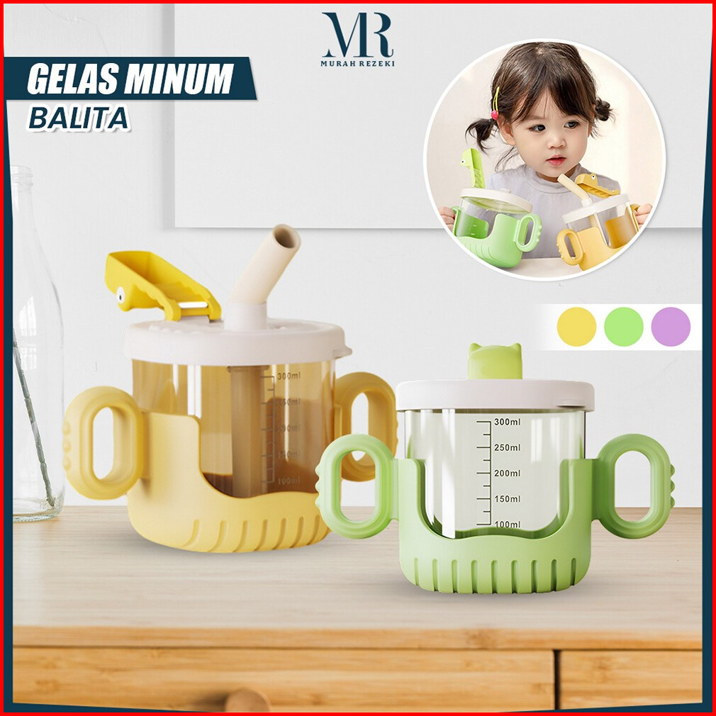 Baby Training Cup 300ml Motif Buaya Dengan Pegangan Sedotan Silikon Gelas Minum Anak Anti Tumpah Botol Minum Anak Mr C10