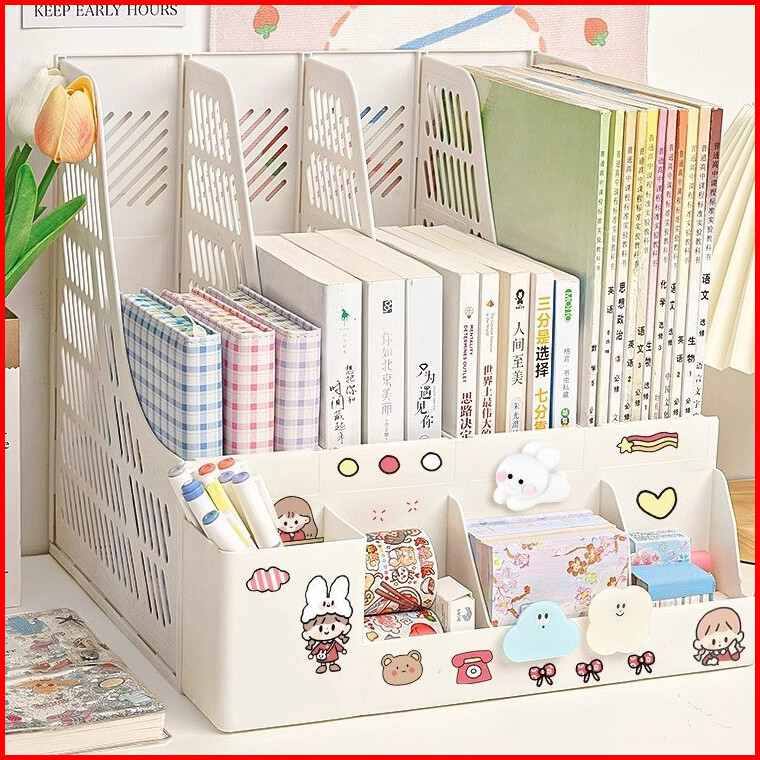 4 Warna Rak Buku Meja Belajar Stationary Kit Rak Buku Stiker Gratis Organizer File Buku Sekat Rak Penyimpanan Bahan Plas