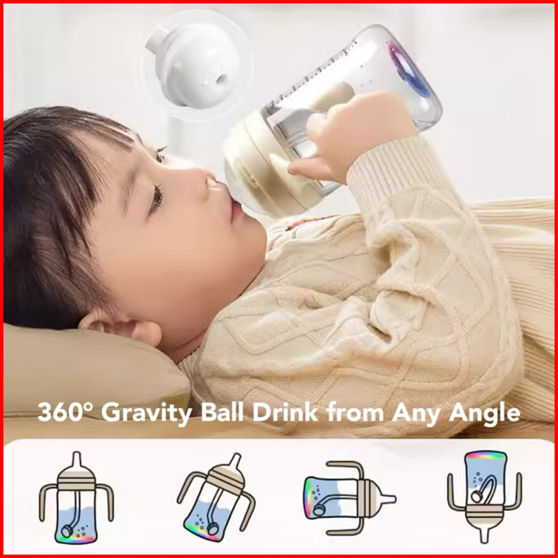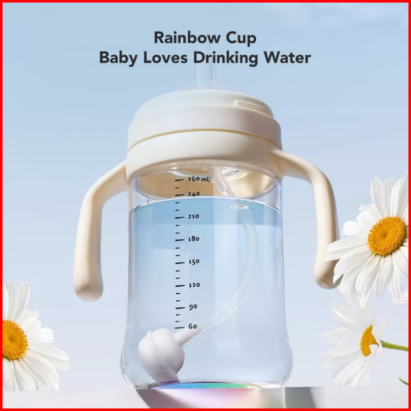 Sakumini Rainbow Botol Minum Sedotan Anak Anti Tumpah Training Sippy Straw Cup Gravity Ball