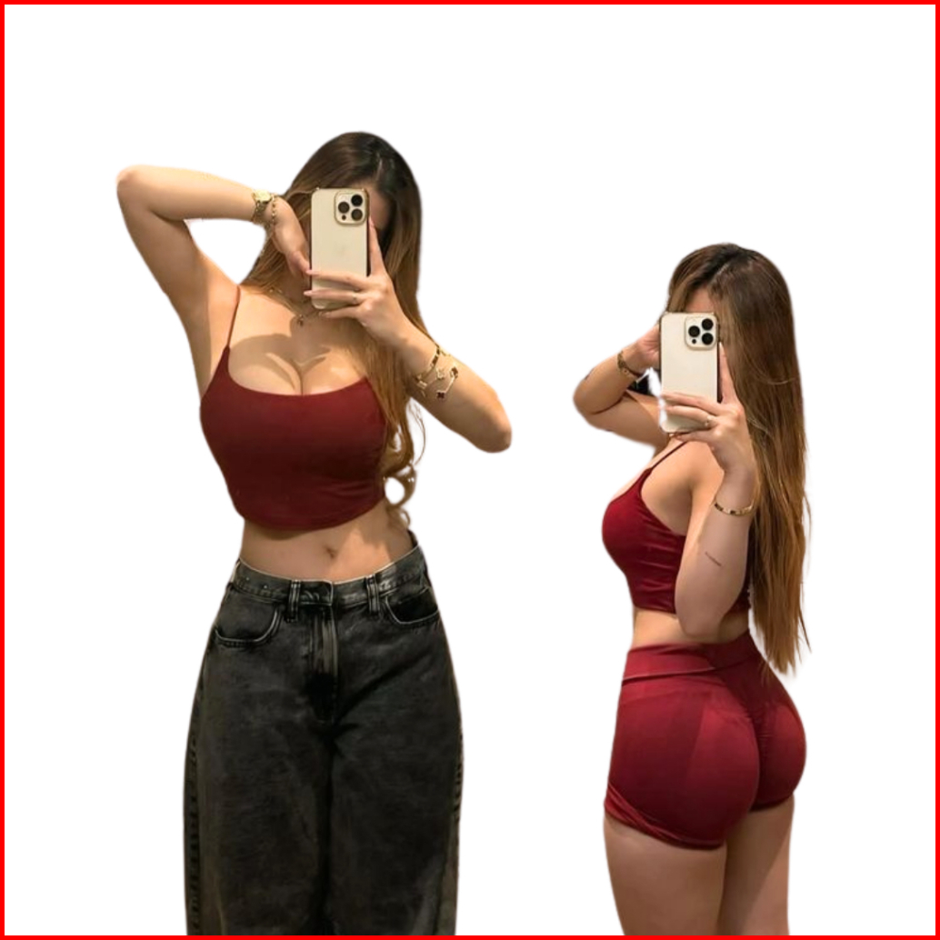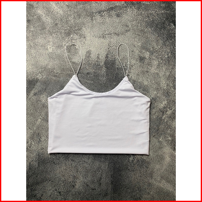 Tanktop Crop Bentuk U Tali Spaghetti Katun Elastis