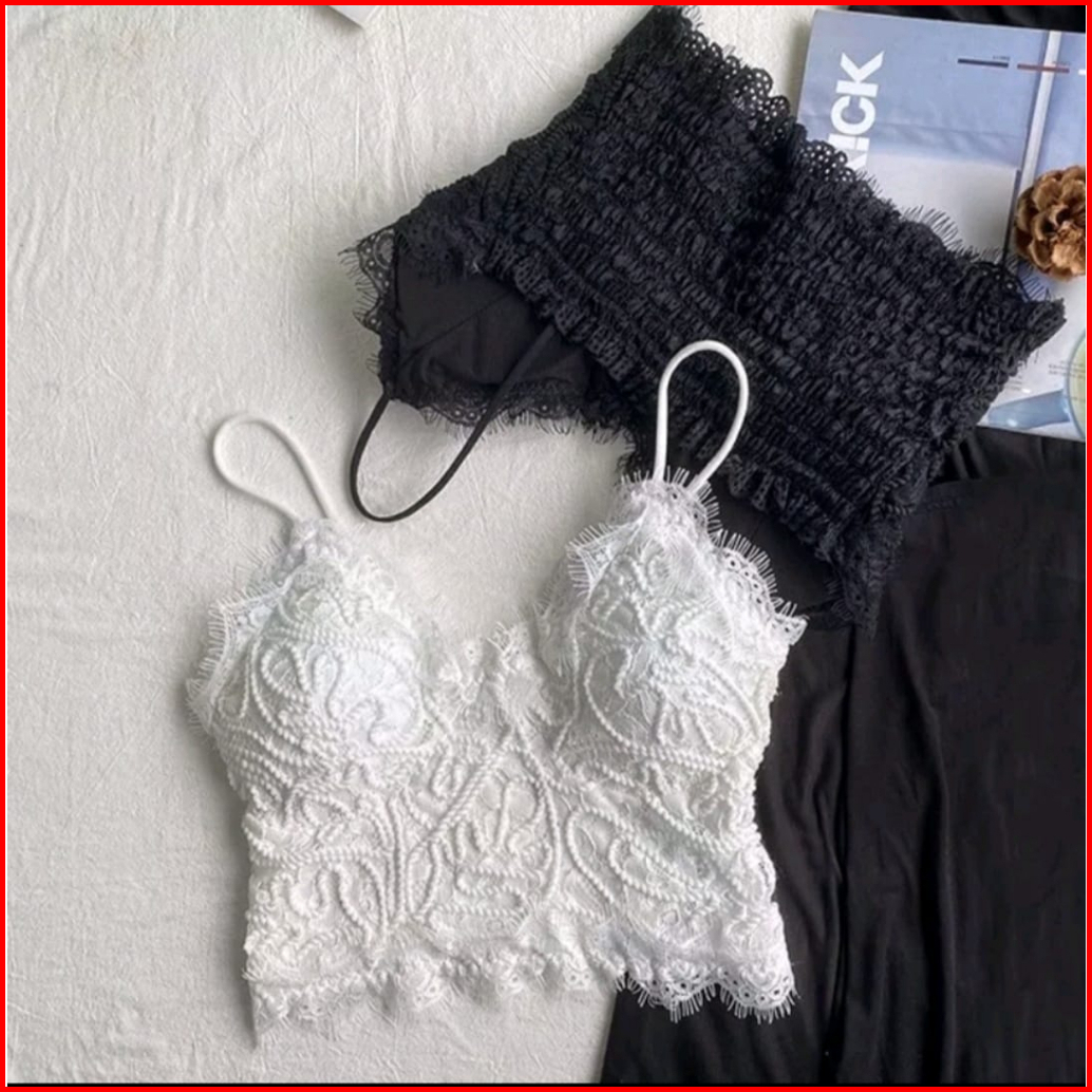 Onna Tank Top Wanita Singlet Bralette Crop Top Spaghetti Strap Sport Bra Tanktop Motif Brukat Bra14