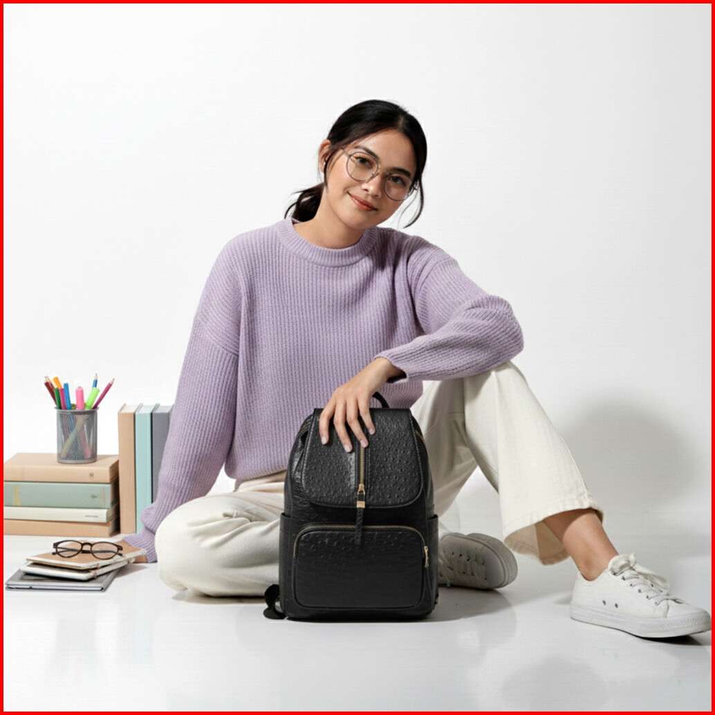 Moco - Cravio Bag Fashion Tas Ransel Wanita Kulit Backpack Kuliah Sekolah Motif Timbul Kulit Jeruk 168