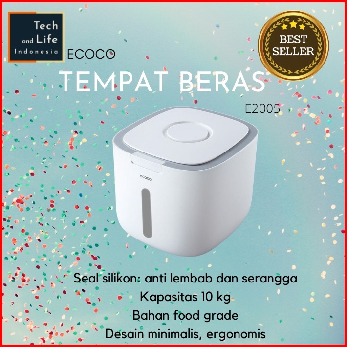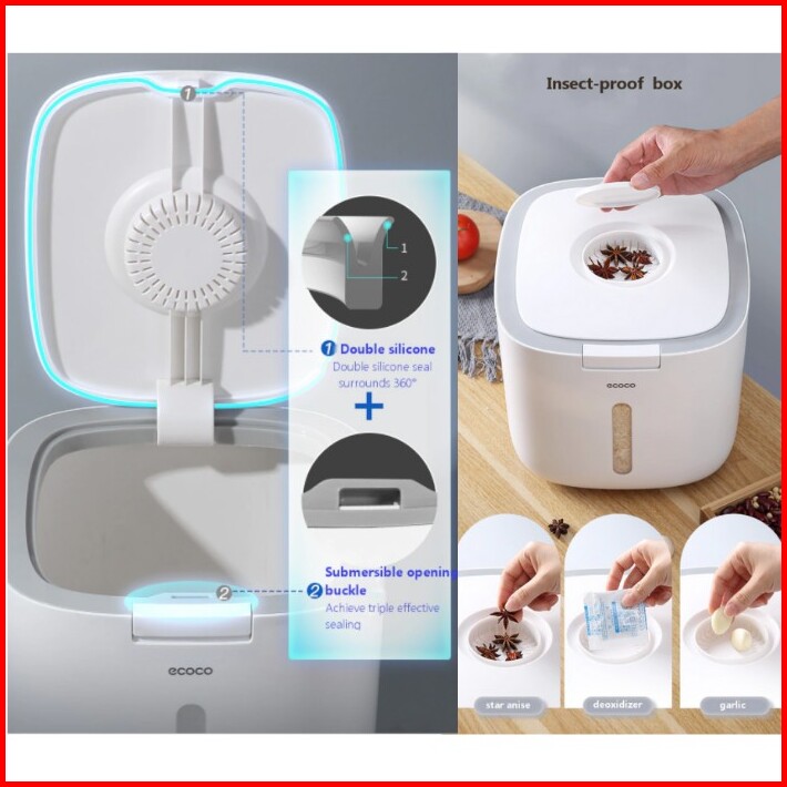 Ecoco Tempat Dispenser Beras 10 Kg Rice Bucket Estetik