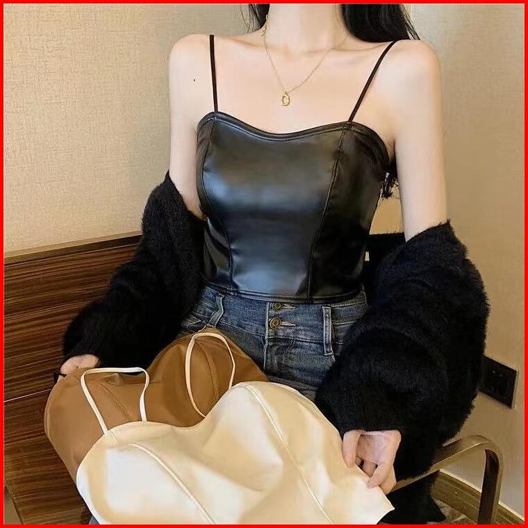 Cfh Tanktop Bra With Cup Bh Bahan Kulit Atasan Wanita Singlet Wanita Br778