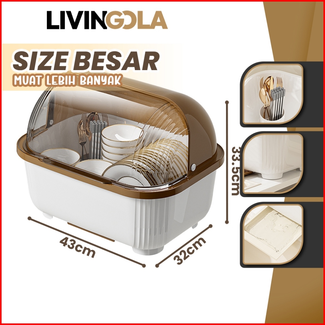 Livingola Rak Piring Dengan Tirisan Air Extra Besar C33 - C80a Rak Piring Mangkok Rak Piring Serbaguna