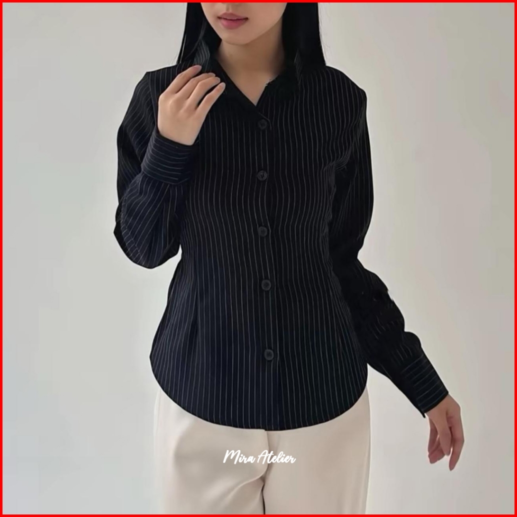 Kemeja Luna Salur Fitted Shirt Lengan Panjang - Kemeja Kerja Wanita Fit Body Press Body