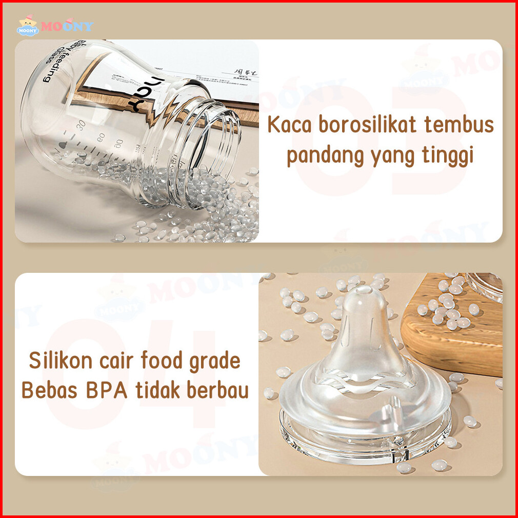 Moony Baby Safe Botol Susu Bayi Wide Neck Baby Bottle Anti Perut Kembung Tahan Suhu Tinggi