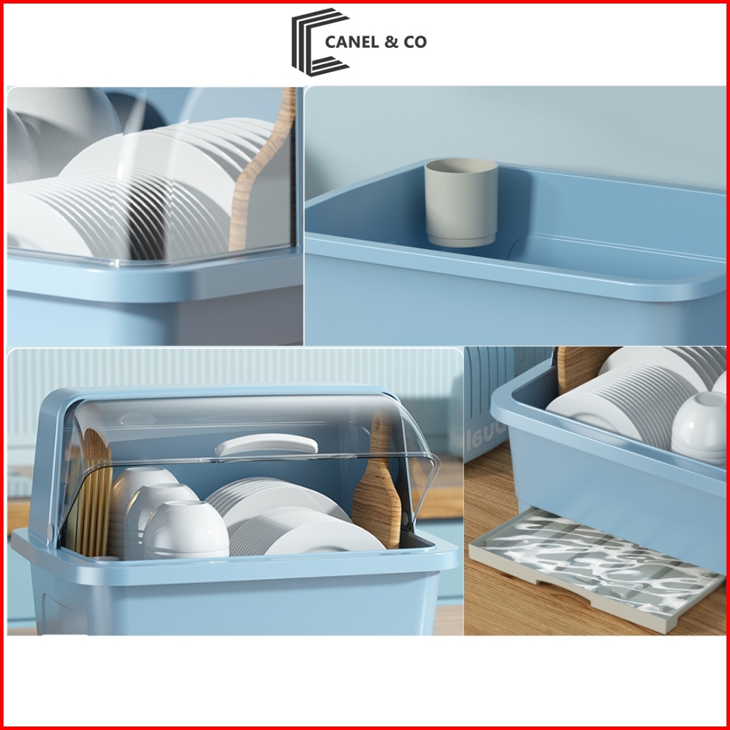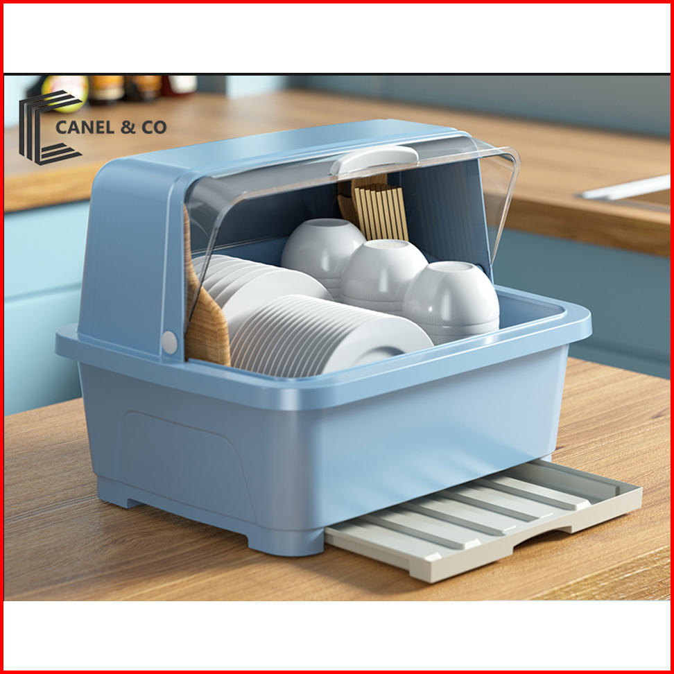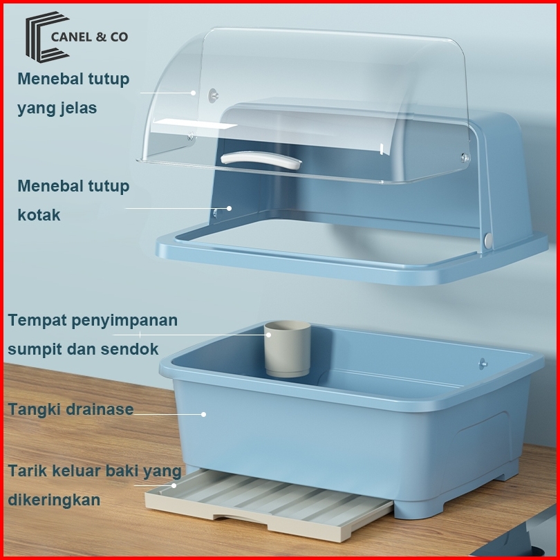 Canel Co Tutup Rak Piring Plastik Rak Pengering Air Mangkok Rak Piring Dengan Tutup Rak Mangkok Garpu Rak Dapur 44 33 33