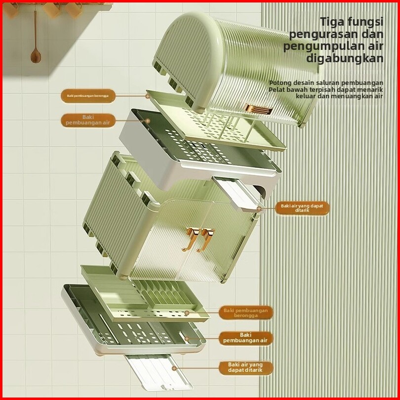 Rak Piring Plastik Tertutup Lipat - Rak Pengering Cuci Piring Portable Mangkok Dapur Praktis Rack