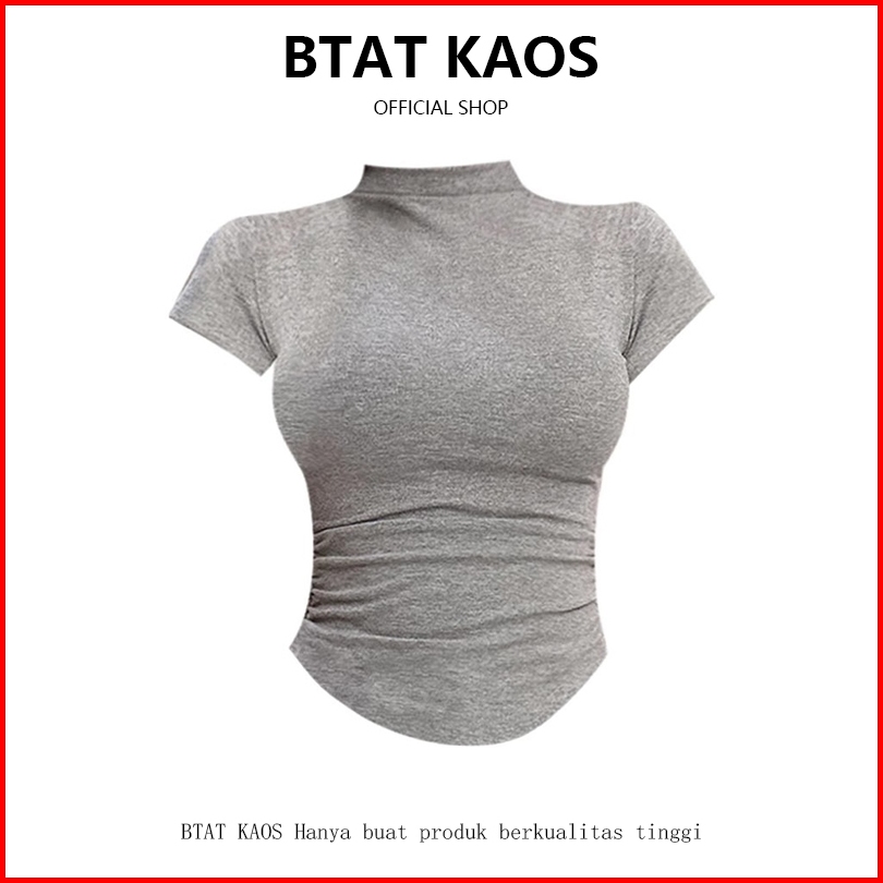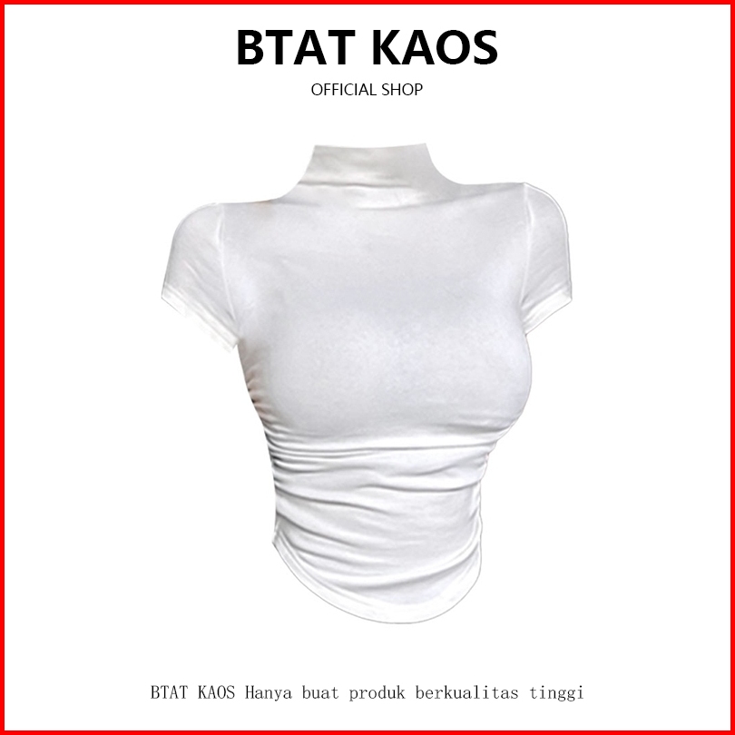 Btat Atasan Turtleneck Lengan Pendek Retro Korea Seksi Wanita Kaos Polos Slim Fit Melar Wanita Kekinian