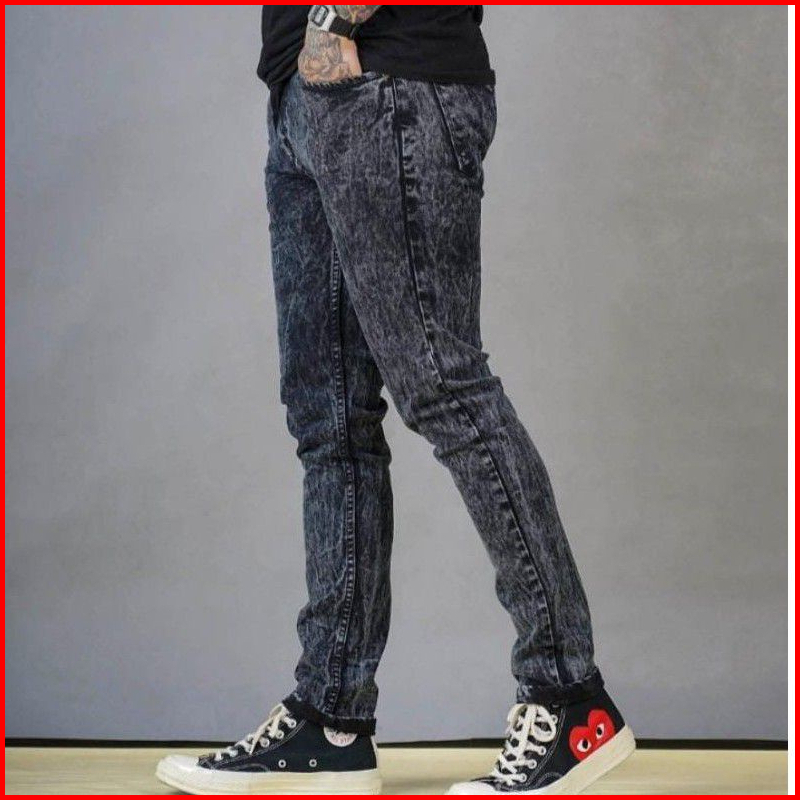 Celana Jeans Pria Black Sandwash Premium Slim Fit Denim Skinny Jeans Stretch Black Sandwash Premium