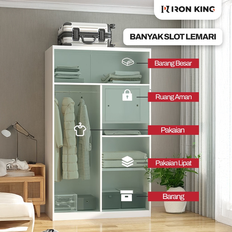 Iron King Lemari Pakaian Lemari Besi Sliding 2 Pintu Lemari Pakaian Minimalis Full Besi & Motif