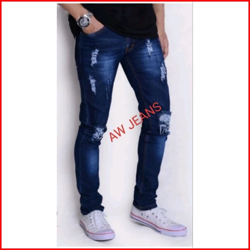 Celana Jeans Sobek Pria Ripped Jeans Celana Slimfit Pria Motif Sobek
