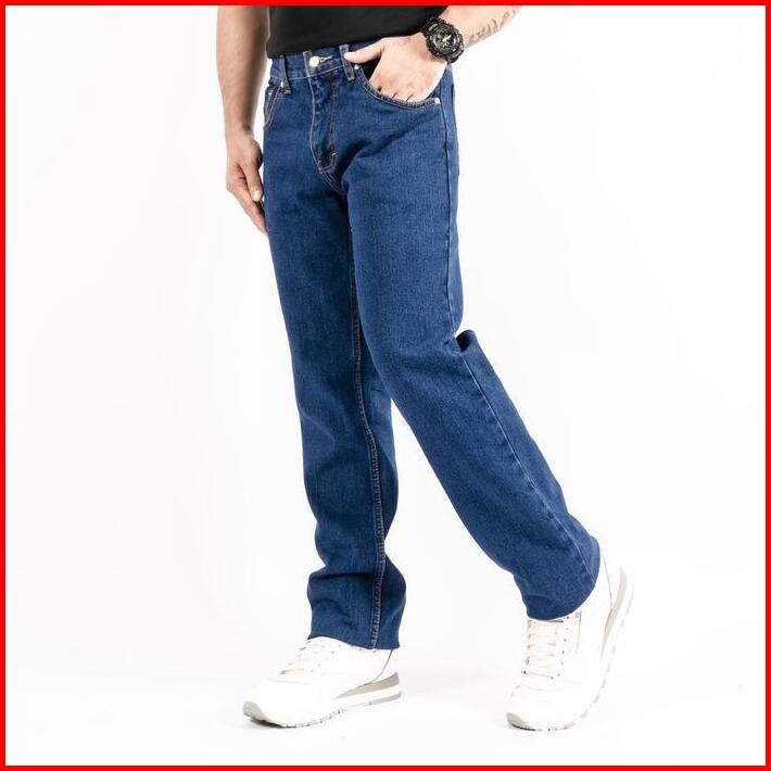 Celana Jeans Jins Pria Cowo Reguler Setandar Panjang Blue Medium Blue Jeans Latino