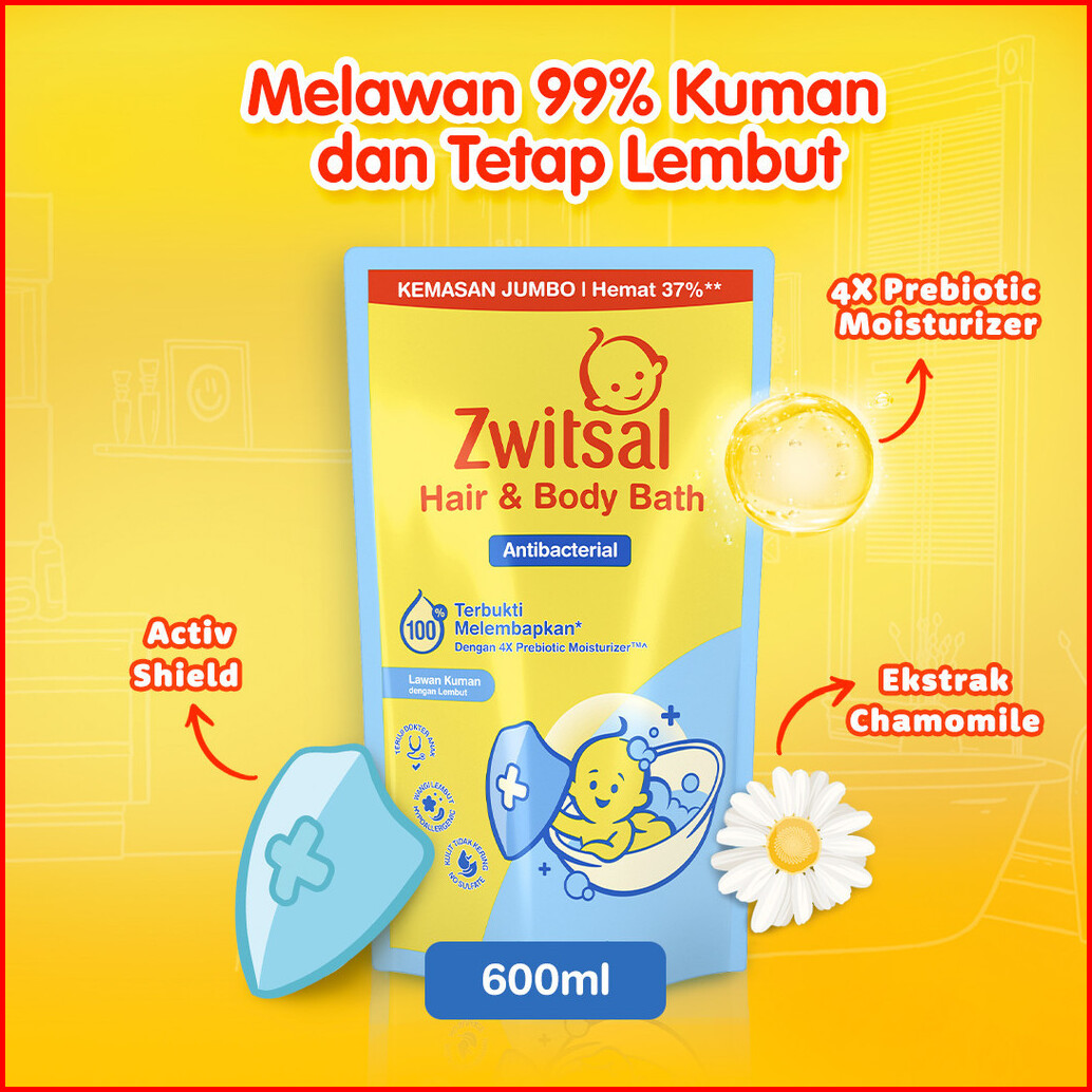 Zwitsal Baby Bath Hair Body Antibacterial 600 Ml - Sabun Bayi