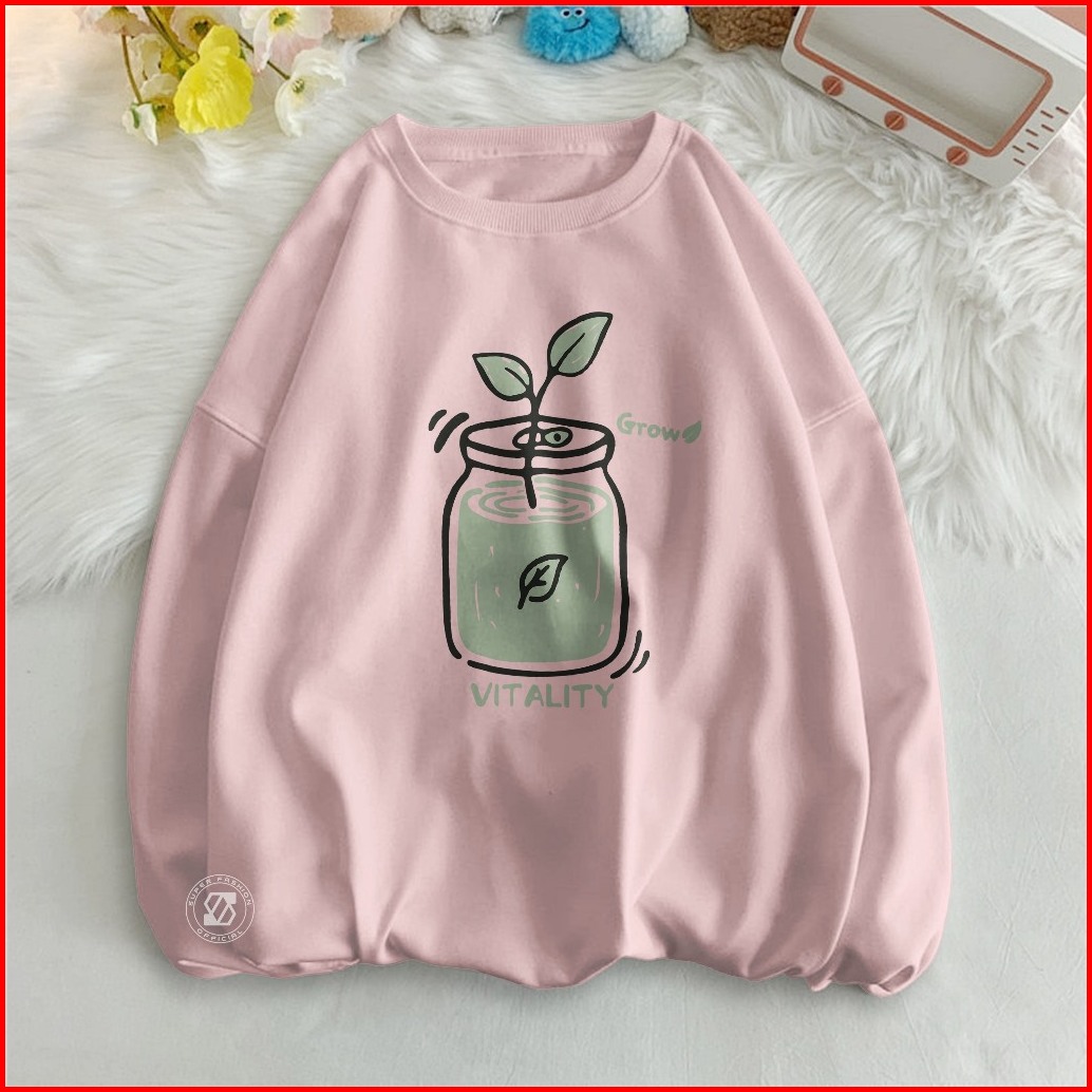 Ss - Vitality Grow Plants Sweater Wanita Basic Style Remaja Kekinian