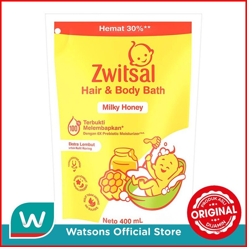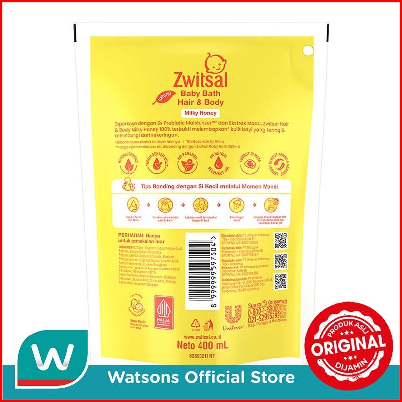 Zwitsal Baby Hair Body Bath Milky Honey Pouch 400ml