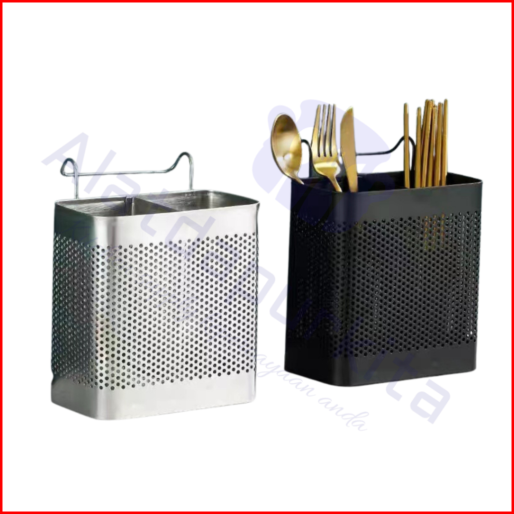 Tempat Sendok Garpu Sumpit Pisau Lubang Bahan Full Stainless Model Double Gantung Ekonomis 13 Cm