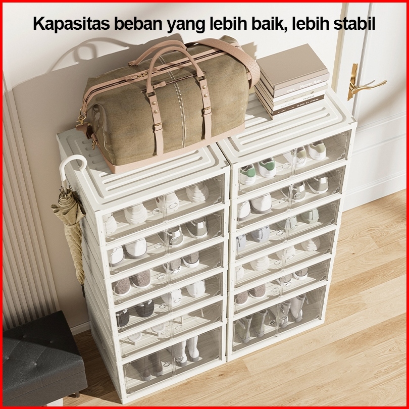Shoe Storage Boxes Lipat Dan Simpan Multifungsi Lemari Sepatu Tertutup Box Kotak Sepatu Anti Debu Tanpa Pemasangan Rak P