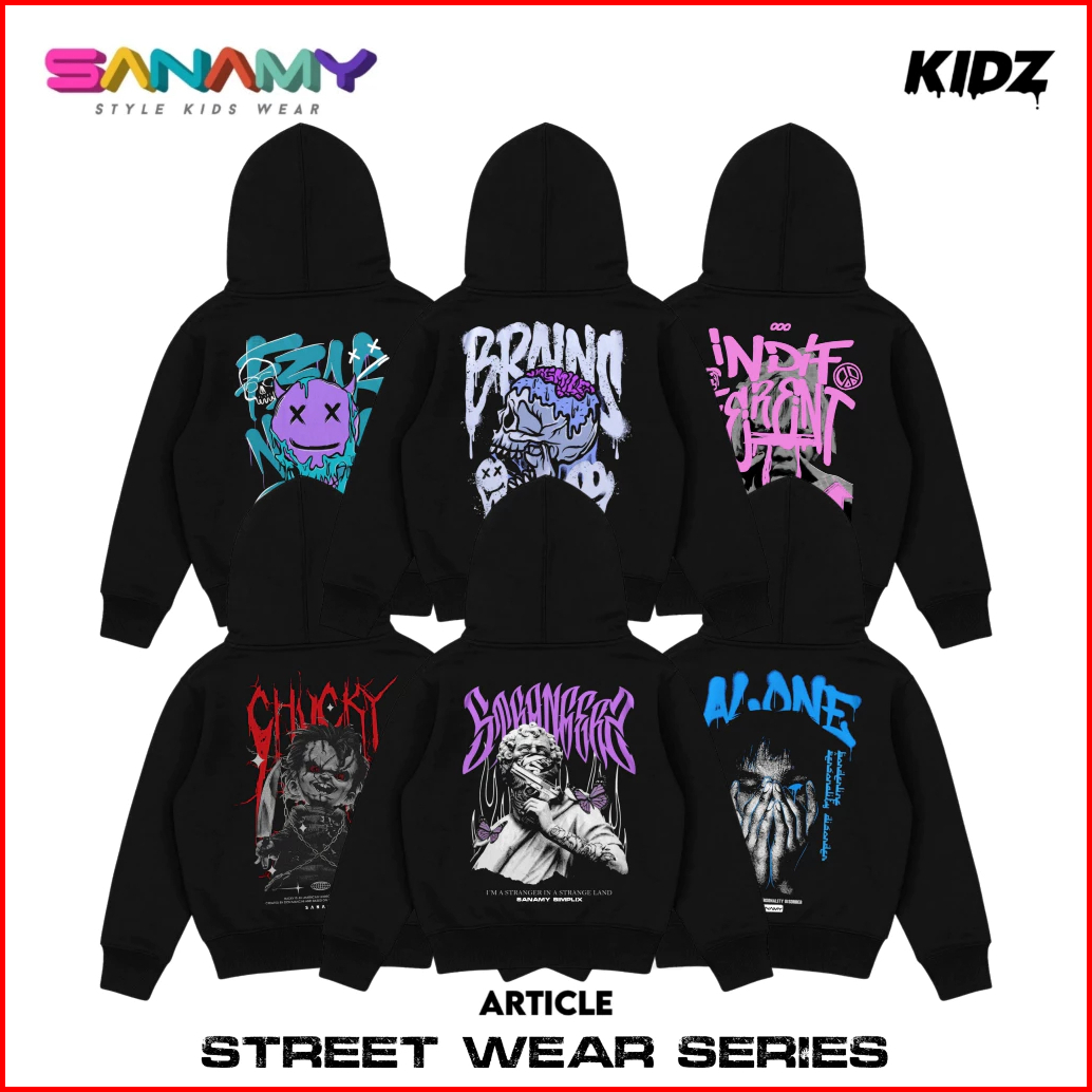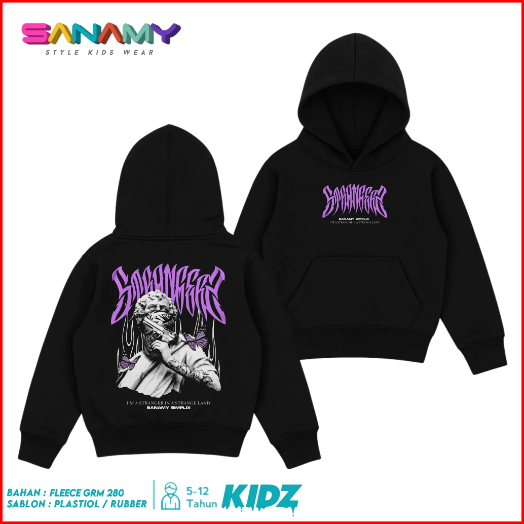 Sanamy Hoodie Anak Usia 9-12 Tahun Hitam Distro Katun Fleece Original
