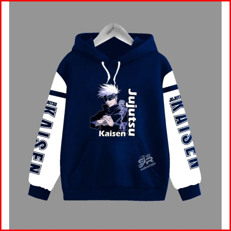 Sweater Hoodie Anak Kombinasi Tangan Putih Gambar Karakter Jujutzu Kaisen Umur 2-17 Tahun