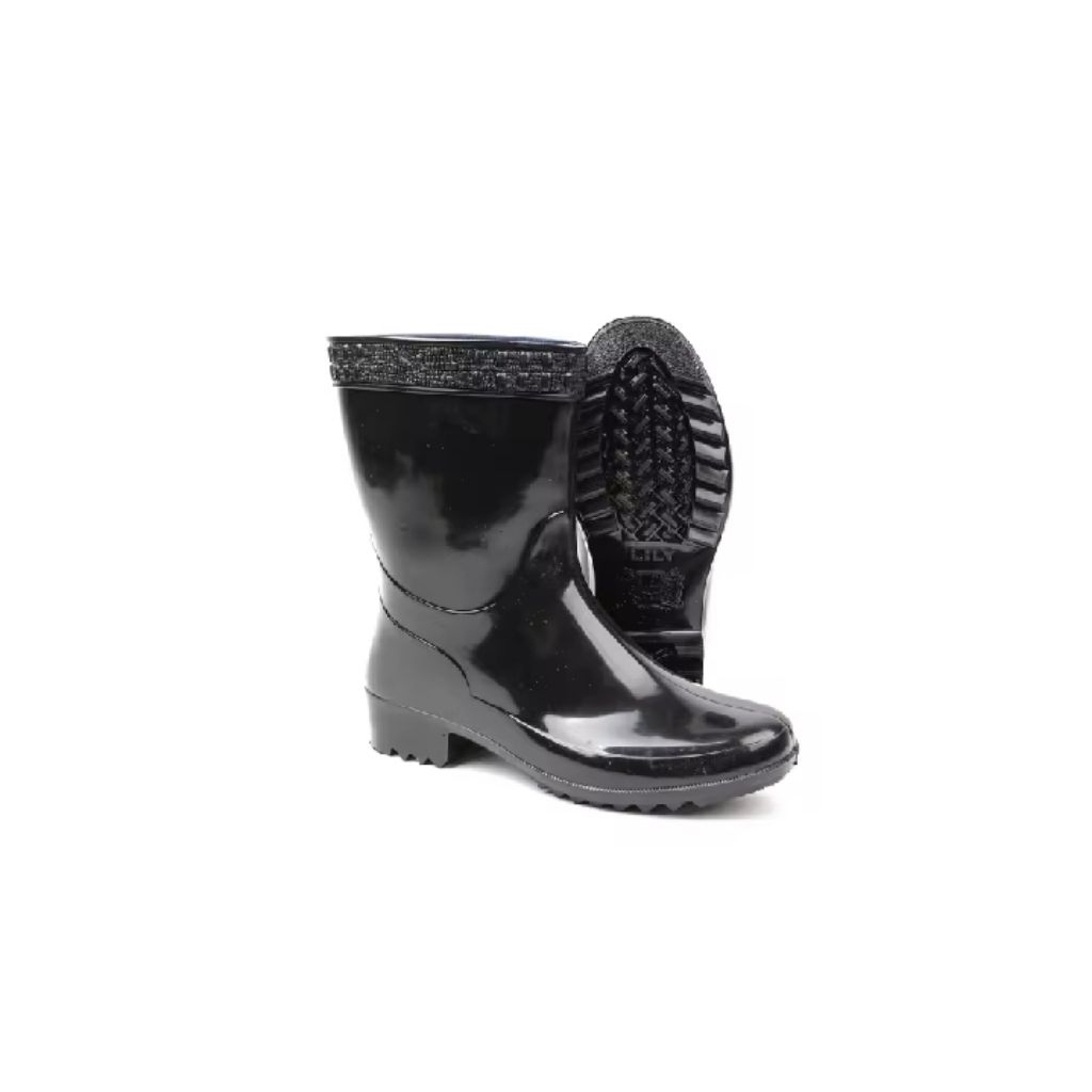 Sepatu Boot Pendek Lily 009 Hitam Boots Karet Lokal Kuat Anti Slip Air Proyek Sepatu Karet Murah Sepatu Kebun Terlaris