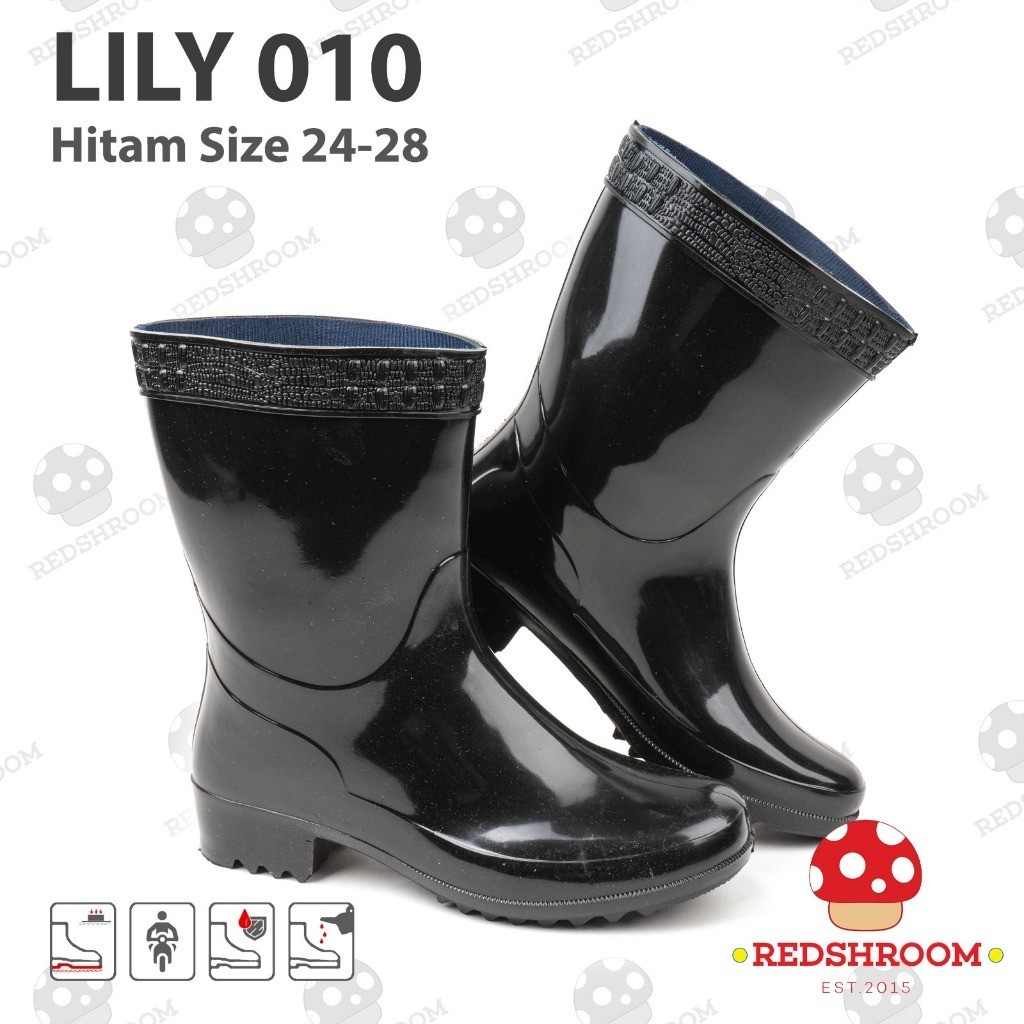 Sepatu Boot Pendek Lily 010 Hitam Boots Karet Lokal Kuat Anti Slip Air Proyek