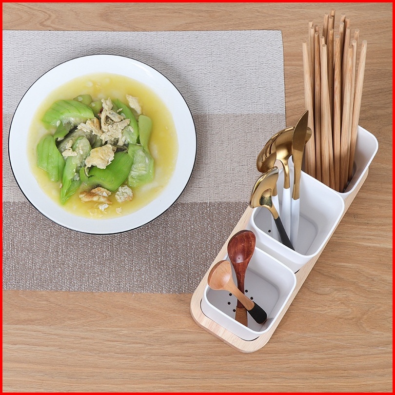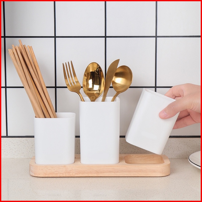 Tempat Rak Sendok Garpu Sumpit Desain Aestetik Modern Minimalis Dengan Wadah Tatakan Desain Kayu Estetik Warna Putih