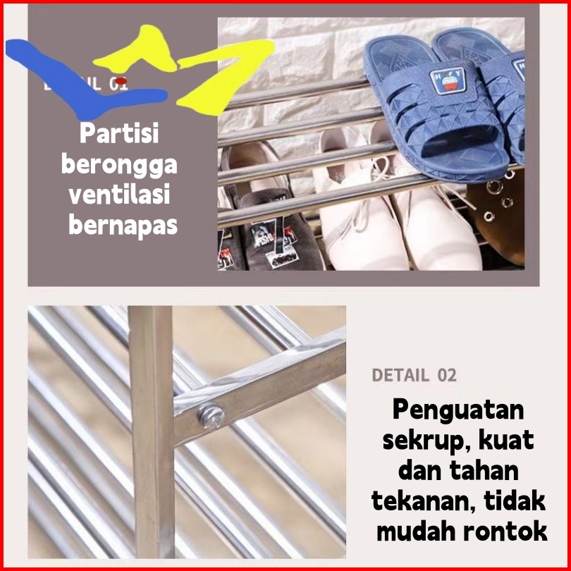 Rak Serbaguna Rak Sepatu Rak Dapur Rak Multifungsi 5 Susun Stainless Steel