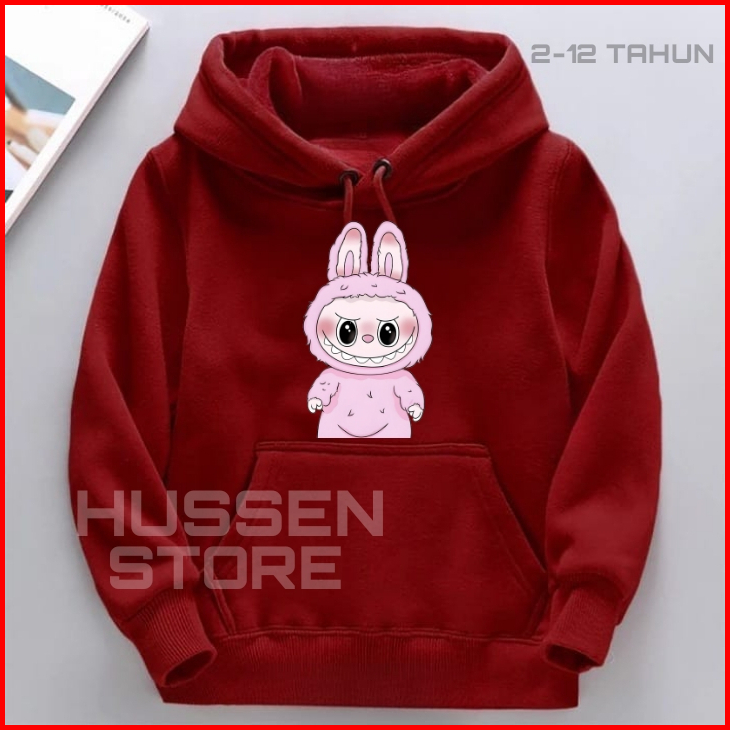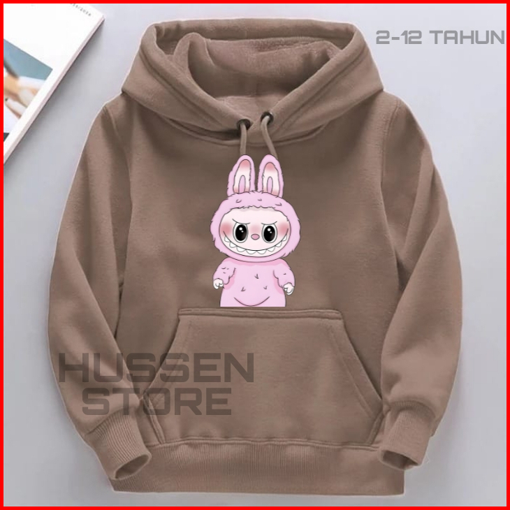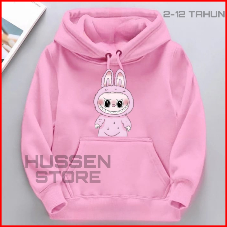Sweater Hoodie Anak Motif Anime Labubu Pink Lucu Untuk Umur 1-14 Tahun