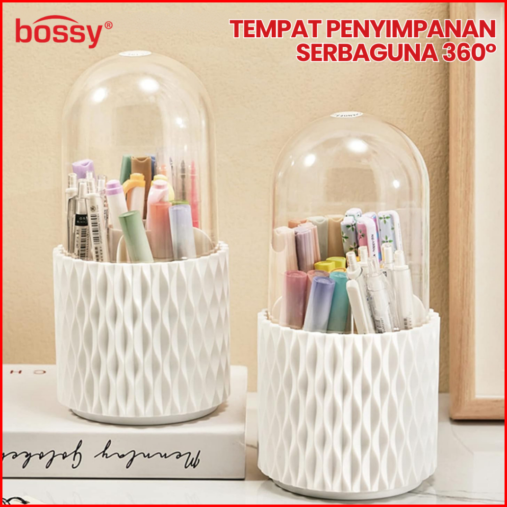 Bossy Tempat Sendok Garpu Berputar 360 Derajat Dengan Tutup Transparant - Organizer Multifungsi Untuk Kuas Makeup Kosmet
